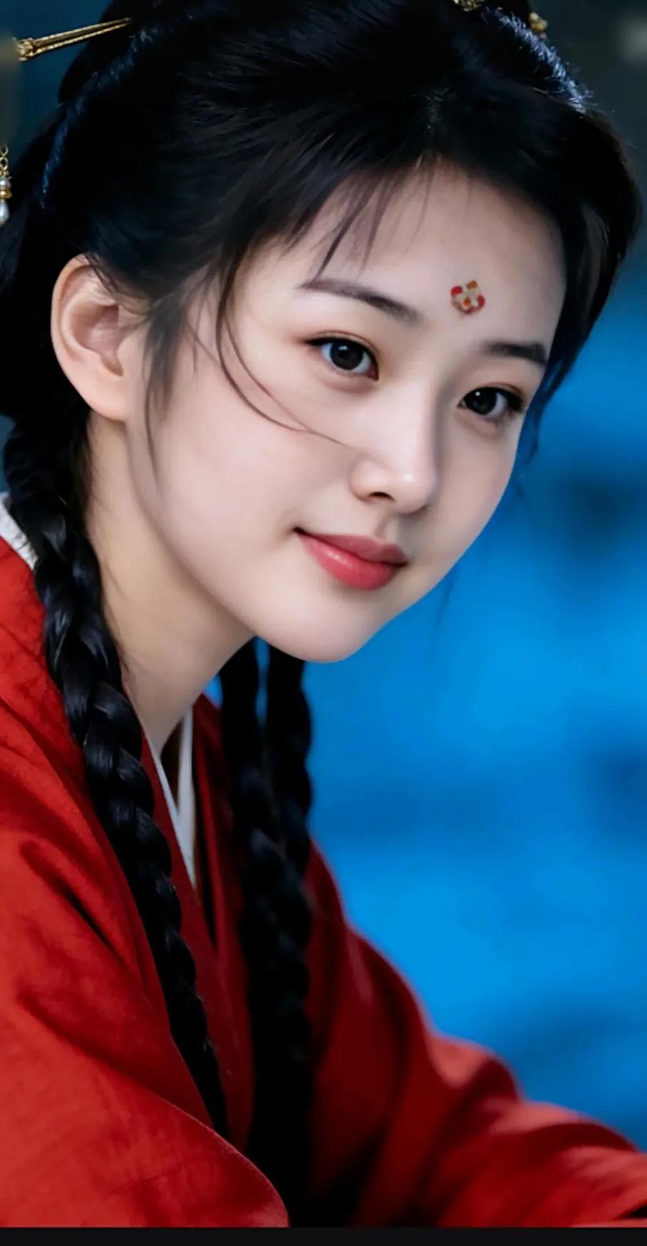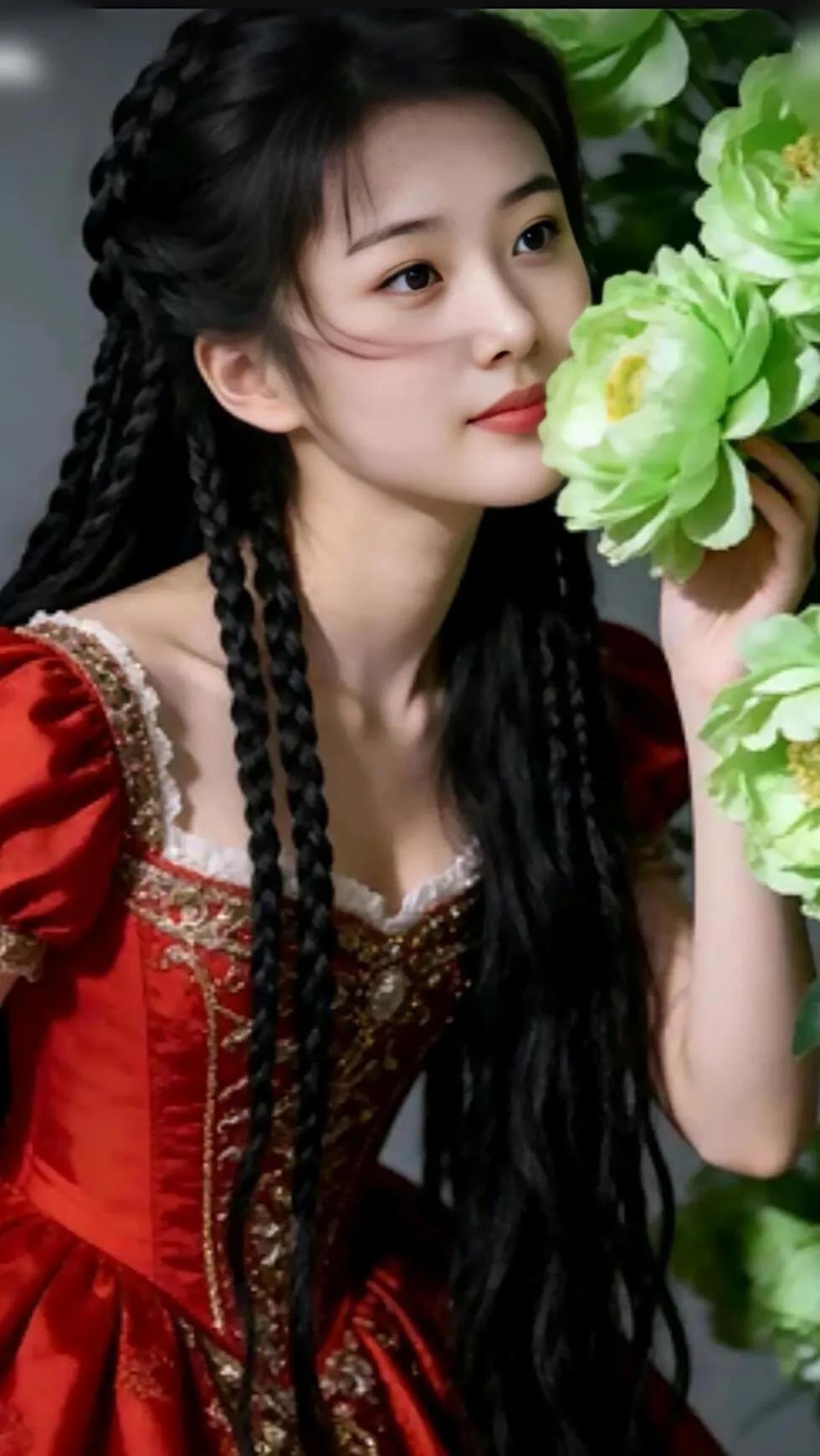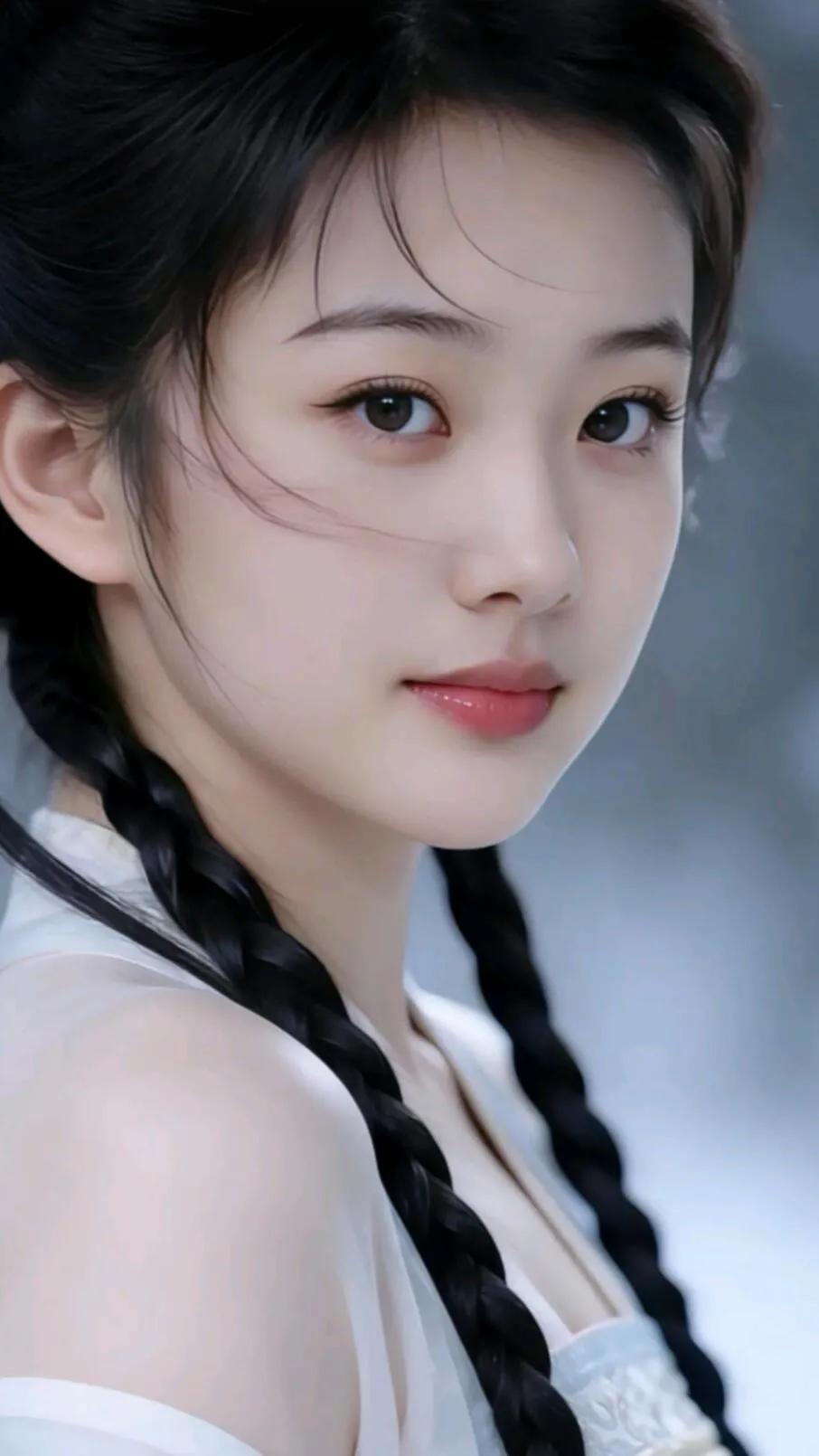 古风少女,黑发编辫,清雅动人