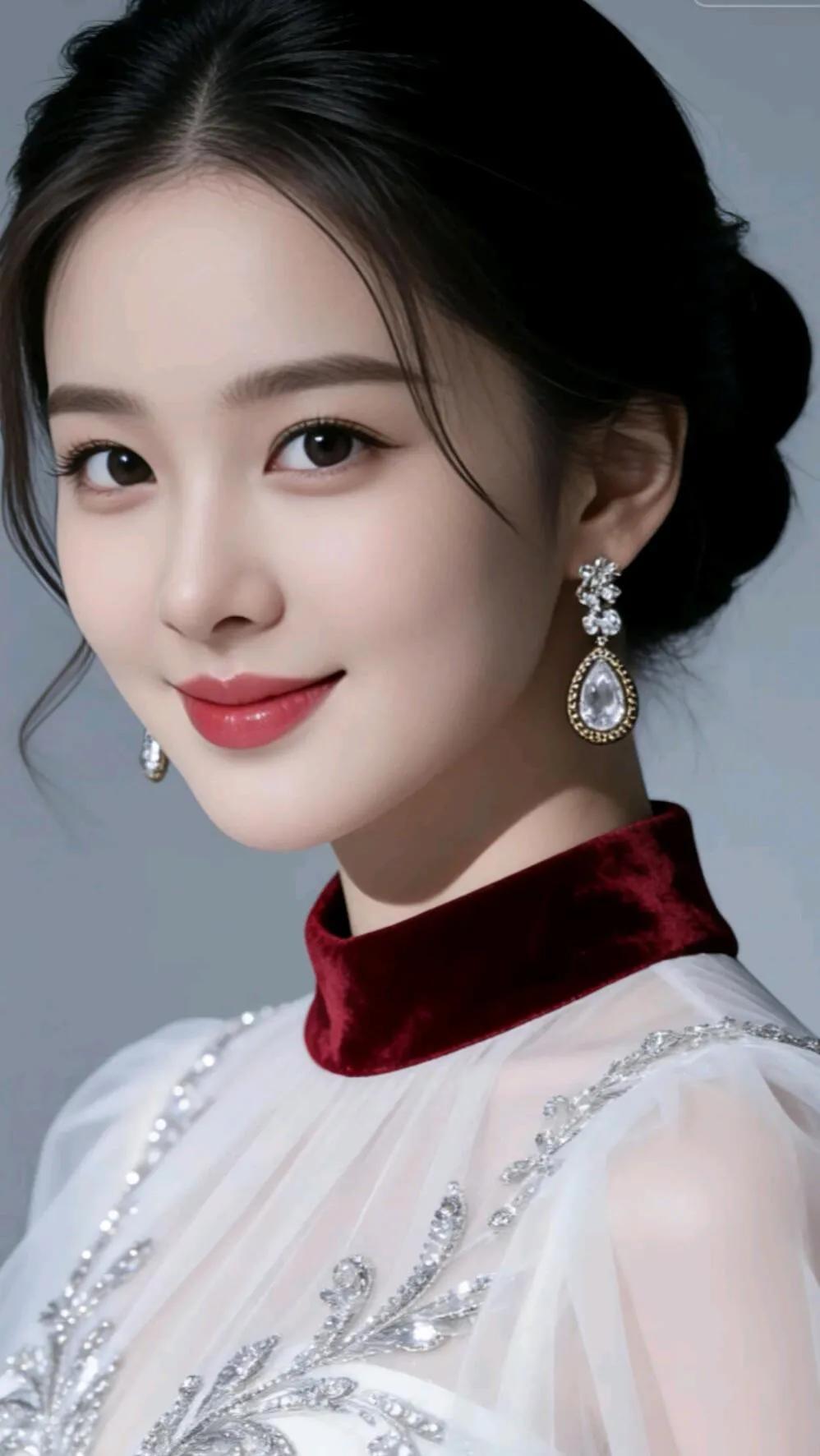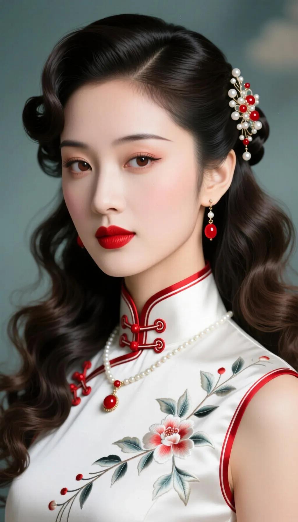 红白相间的旗袍,搭配精致的盘发和花饰,尽显东方古典美!