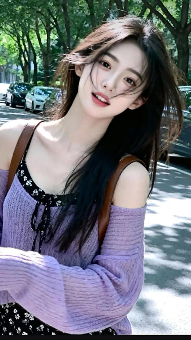 海边少女穿搭指南:紫色露肩裙+珍珠项链,优雅动人!