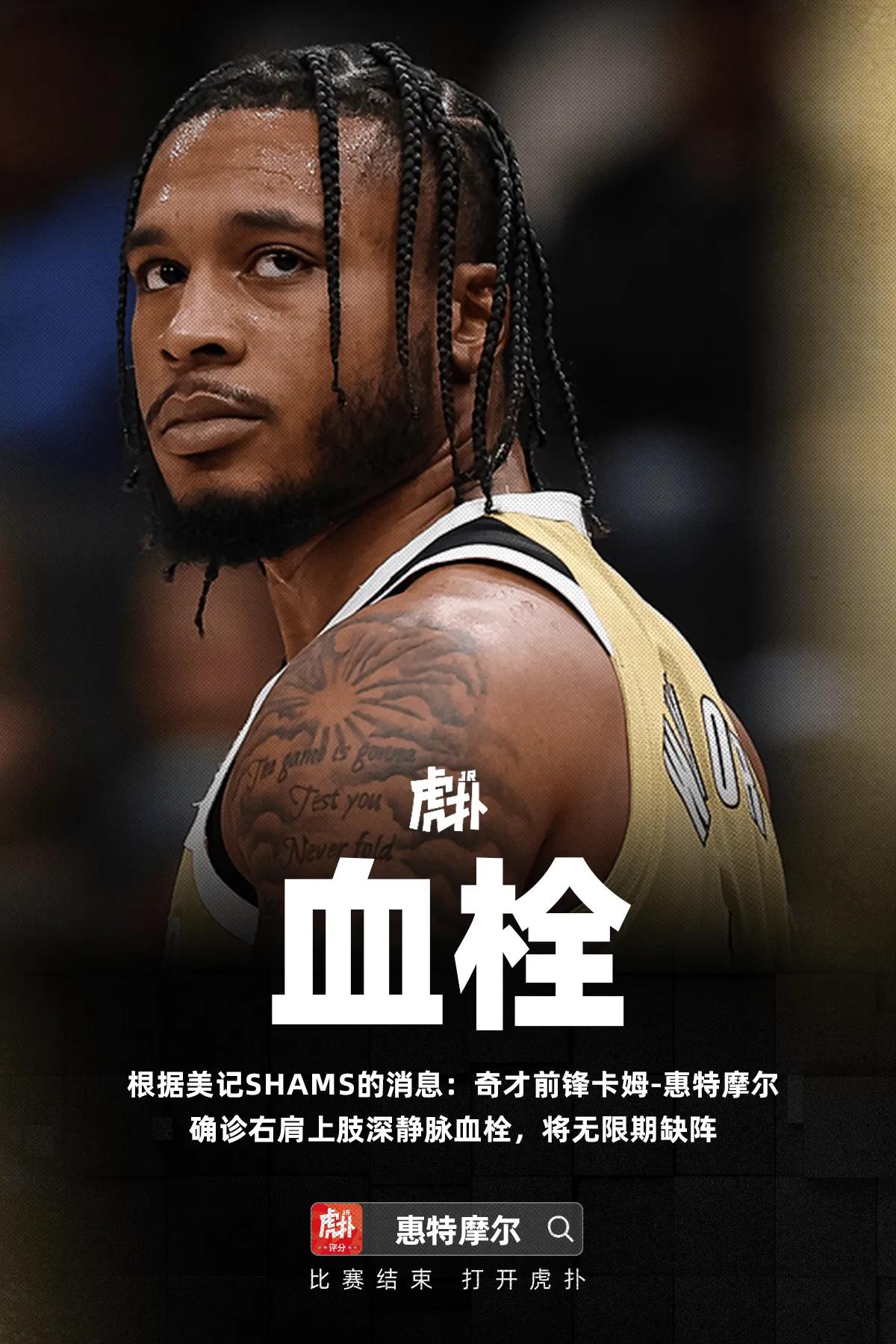 又是遭遇血栓,感觉最近几年遭遇血栓病的球员越来越多了。白魔惠特莫尔也是命运不佳,其实,在火箭队表现还算是挺好的,火箭为了不耽误他的发展,送到了比较适合他的奇才队,但没想到在奇才队他根本没有获得足够的机会,现在又遭遇到这一次伤病,估计未来的职业生涯都比较悬了!