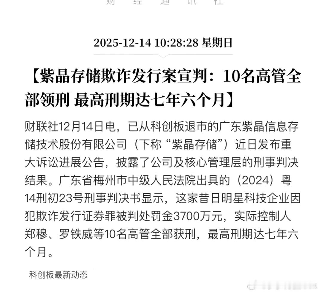 紫晶存储欺诈案宣判,十个高管全部进去了,但这个还不够,期待会计师事务所、证券公司的也一起进去。财经股票