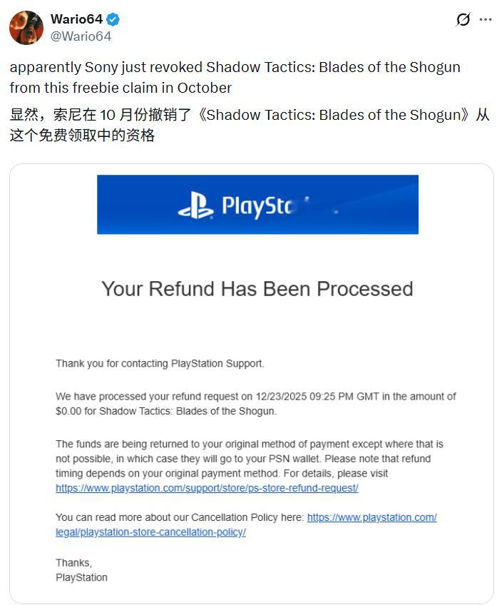 【索尼追回玩家用Bug免费领的游戏,《古墓丽影》也悬了?】今日,有玩家在推特上反映,于今年10月通过特定Bug在PSN商店免费领取的《影子战术:将军之刃》,在时隔约两个月后,其游戏许可证被索尼官方突然撤销,导致已“入库”的游戏无法继续游玩。玩家当时可通过“先将免费试玩版入库,随后在游戏页面领取完整版”的操作,获得该游戏。但今日博主更有用户称:“大多数人在圣诞节送礼,索尼却在此时收回。”近期PSN商店也出现了《古墓丽影:暗影》的类似免费领取活动,通过非正常途径获取的游戏内容,即使在较长时间后,仍存在被官方追溯撤销的可能性。