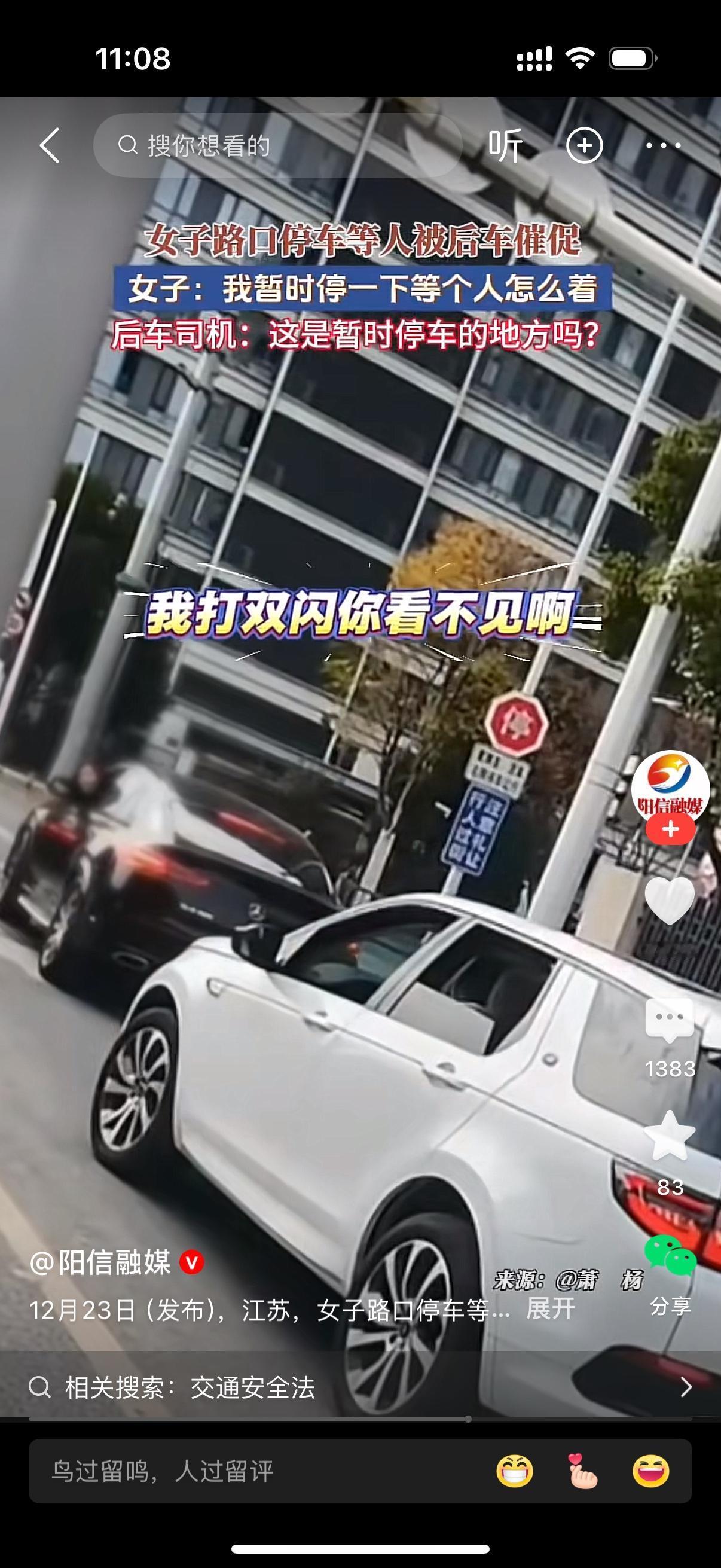 女子在路口停车等人被后车催促。女子斥责后车司机,我打着双闪你看不见吗?等个人怎么呢?后车司机问,这是暂时停车的地方吗?女子大怒,你眼瞎啊。脑子有病。后车司机直接下车,走到女人面前,你再逼逼一下?女子自知理亏,赶紧上车逃跑了。