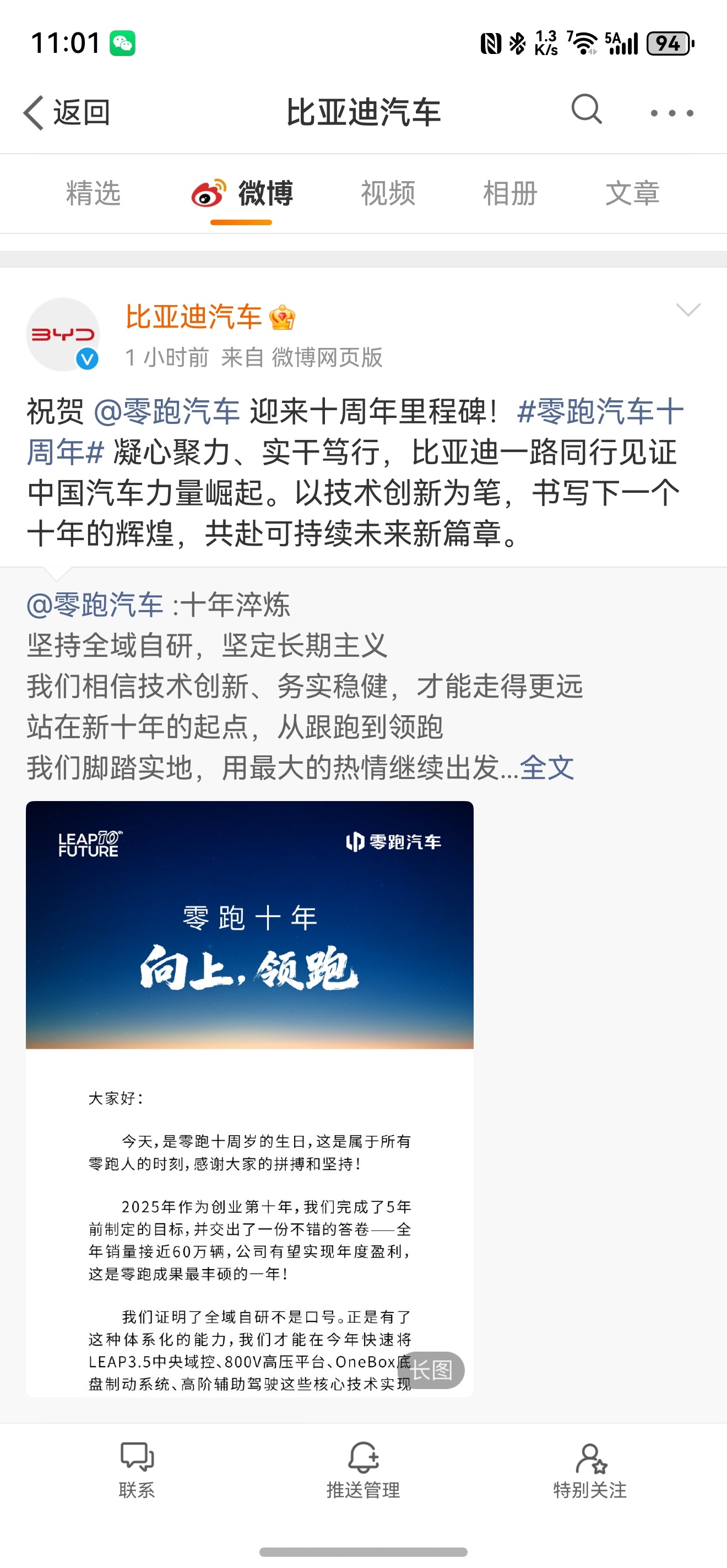 迪子格局真的可以啊,零跑十周年,比亚迪送上祝福:一路同行,共创辉煌