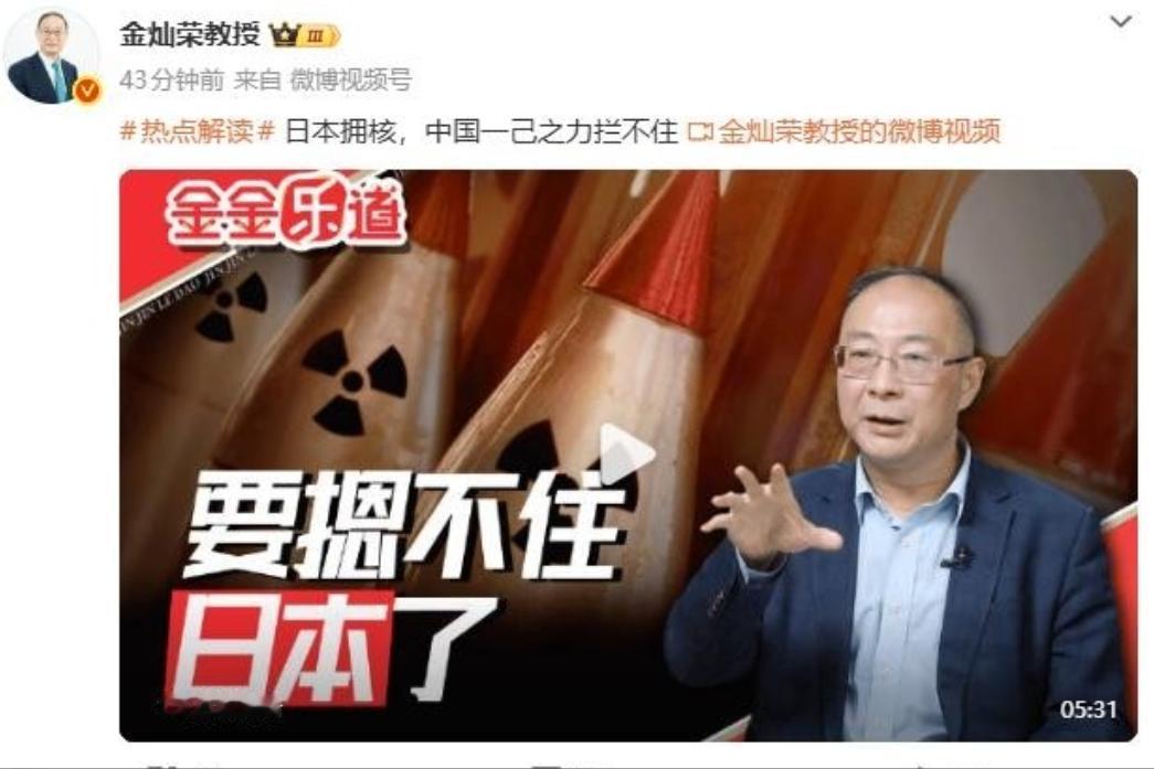 就在刚刚 金灿荣教授宣布了: 日本拥核,中国一己之力拦不住!要知道,这话不是什么“营销号”说的大话,而是由国际关系专家金教授给出的分析! 2025年12月18日,一个本该平静的日子,却被日本首相高市早苗政府的一位高级安保官员一句话一石激起千层浪。 这位名不见经传的官员口出狂言,表示日本作为一个自由民主的国家,应该拥有属于自己的“核武器”。 而他说出这番话的背景和历史,似乎已经被遗忘,但是其他国家却永远记得,日本是战败国,根本没有资格提出这样的无理要求。 这番话可不是小道消息,而是摆在全世界面前的赤裸现实——日本真的在试探核武装的底线。 金灿荣教授一句话,直接捅破了这层薄如蝉翼的窗户纸。 一瞬间,舆论炸开了锅,网友们对此议论纷纷,如果这是真的,那东亚安全的多米诺骨牌,是不是已经开始倾斜了? 日本的“核算盘”,不是临时起意,且早就筹谋已久,日本政府的动作早就露了底。 一边是高市内阁强推修改《国家安全保障战略》,一边是把“对敌基地攻击能力”写进新战略纲要,甚至已经把军费拉高到GDP的2%。 日本虽嘴上说“坚持不拥有、不制造、不引进核武器”,但现实是早就在和美国搞“延伸威慑”桌面演练,连核武器怎么用都在推演。 说白了,日本离“核共享”只差一步。 更别说那骇人的47吨分离钚,按照专家估算,这批货足够造出6000枚核弹头。 技术、原料、产能一应俱全,缺的只是一个“政治决定”。 现如今,连这个决定的“口风”都已经放出来了,这还能算是“和平国家”吗? 看到这,你可能会问:美国不是一向反对核扩散吗?日本敢这么做,美国难道是装睡? 美国的态度,说白了就是:嘴上反对,行动默许。 一方面,美国国务院还在唱高调,说日本是“核不扩散的领头羊”;但背地里,却早就和日本搞起了“延伸威慑”深化合作,连核武器的使用流程都在一起演练。 这不就是打着“保护伞”的旗号,实则给日本撑腰吗? 从战略角度看,美国的算盘也不难理解。 在特朗普政府主导的“印太战略”下,华盛顿需要一个能扛事、能打仗、能牵制中国的“亚洲小老弟”,那日本,自然是最佳人选。 这才是金灿荣教授说“中国一己之力拦不住”的深层逻辑:中国确实可以反对,但只靠中国,是压不住背后那个撑腰的美国的。 别以为这事只是中日之间的“你来我往”,一旦日本真的迈出那一步,整个东亚的安全格局都得重写。 如果日本真拥核,韩国的压力会瞬间爆炸,可能立刻要求部署更高级别的美军核力量,甚至走上核自主化道路。 朝鲜呢?一向以“安全威胁”为借口发展核武器,日本拥核将成为它最直接的“正当理由”,半岛局势将陷入螺旋式对抗。 更可怕的是,整个东北亚将陷入一场围绕核武器和高超音速武器的军备竞赛。 所有国家都得提高军费,升级武器,安全不但没增加,反而更加不稳定。 面对日本的“核冲动”,中国没有坐视不理。 外交部已经明确表态:严重关切,坚决反对,认为这违反国际法。 但光靠喊话显然不够,中国正在做几件更实际的事: 一是联合俄罗斯等大国,对美日形成战略围堵,两国在核扩散问题上有共同利益,协调立场可以产生强大压力。 二是积极利用国际平台,把日本的钚库存问题搬上国际原子能机构、联合国会议桌,让全球都来关注、监督。 三是强化自身战略威慑能力,毕竟真正能让对手冷静的,不是对华,而是你有让他不敢动手的实力。 金灿荣教授说日本拥核不是中国能单独拦住的事,因为这已经超越中日之间,是对整个二战后国际秩序的挑战。 如果日本成功突破“无核国”的身份,那《不扩散核武器条约》就是一纸空文。 已经到了最危险的时刻,所有负责任的大国都必须站出来,让日本明白:和平不是可选项,是底线,是红线。 日本的“核试探”,不是一句口误,也不是吓唬谁,而是一头披着羊皮的狼的巨大图谋。 中国不能独挡一面,全球也不能袖手旁观。 日本若真拥核,东亚将不再安全,世界也将进入一场没有赢家的核阴影。 历史的钟声已经响起,这一次,谁也不能装聋作哑。 信源:公然鼓吹“拥核” 日本到底想干什么? 央视新闻 | 2025年12月24日 01:30:05