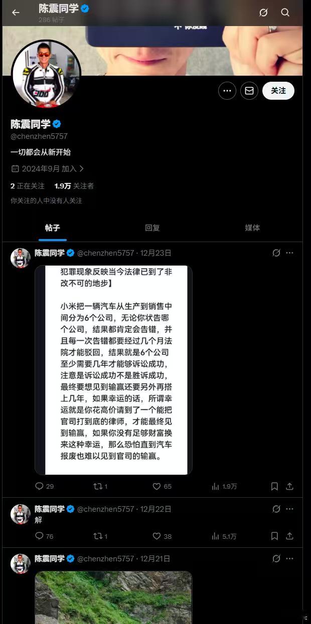 陈震部分账号已解封 陈震的小红书、B站、今日头条账号已解封,但暂未更新内容;微博