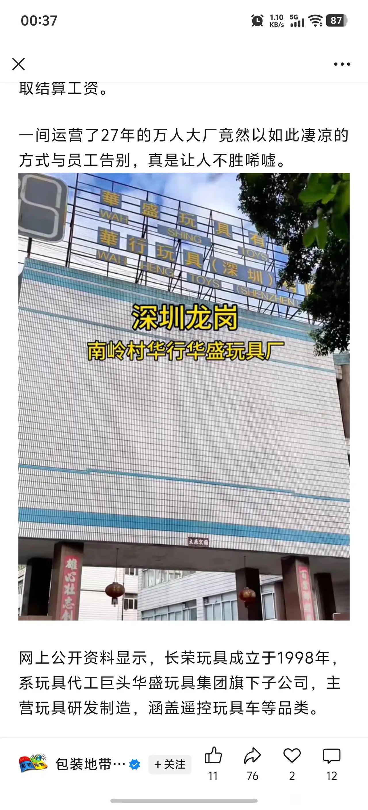 突发!东莞又一家万人大厂破产。 现在玩具厂真的就是夕阳产业了。小孩子现在都玩手机游戏机了。要不转型搞电子游戏设备,要不转型搞模型,都不搞那只能破产了。
