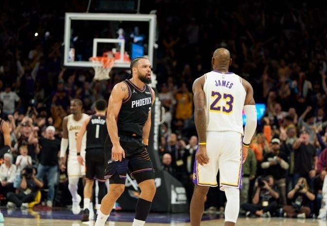 有一说一,今日狄龙和詹姆斯根本不在一个级别!! 詹姆斯:这场比赛上场26分钟,投篮14中7,三分球5中3,罚球11中6,得到23分+2篮板+6助攻,0次失误,投篮命中率50.0%。对于一位老将来说数据很不错,但场上的防守已经跟不上了,经常出现漏人和被一步过的情况,球队最终108-132惨败太阳,正负值-18成为队内表现低迷的缩影之一。 狄龙:这场比赛上场24分钟,投篮15中10,三分球6中3,罚球2中2,得到25分+0篮板+0助攻,0次失误,投篮命中率66.7%,正负值+20。直接对位对方核心,从体力上消耗对方,精神上更是让对方破防。同时凭借高效的进攻表现,帮助太阳队大胜湖人。