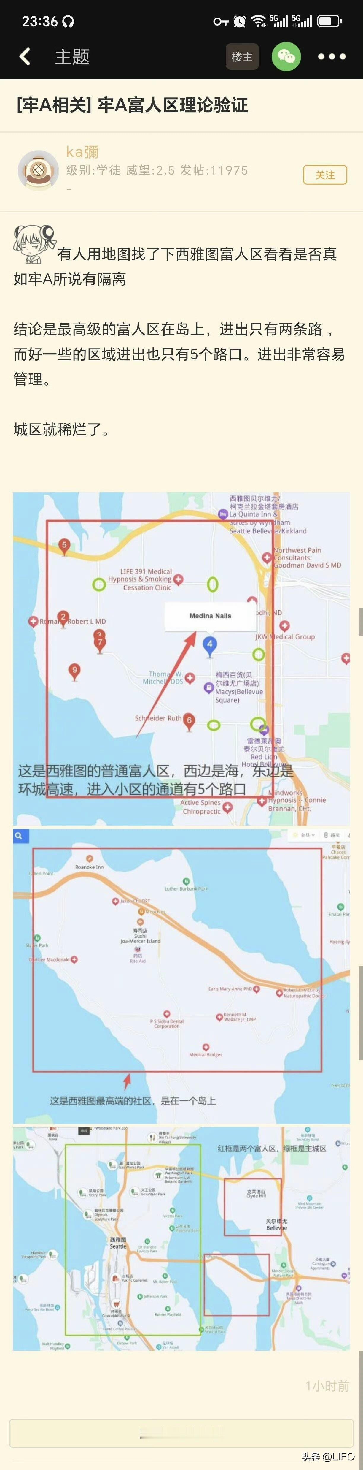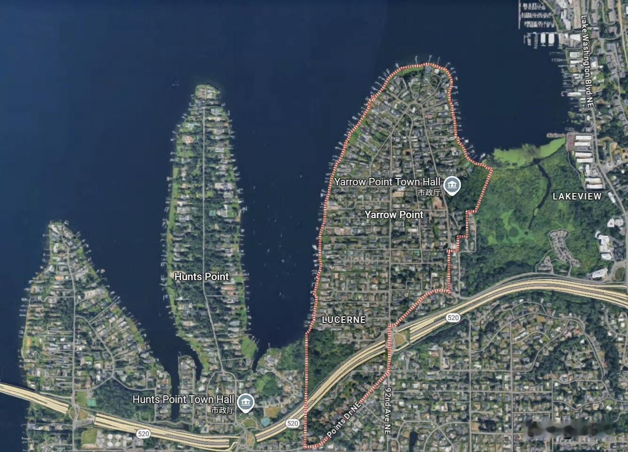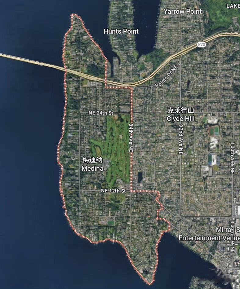 西雅图折叠是这样的。西雅图东区的 bellevue、Kirkland、Redmond、issaquah、sammaish、Clyde Hill等地方被称为“东雅图”,Yarrow Point、Medina和Hunts point之类的地方是顶级富人区。