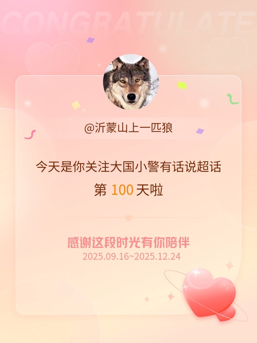 大国小警有话说今天是我关注超话的第100天,希望能继续伴你一路前行~