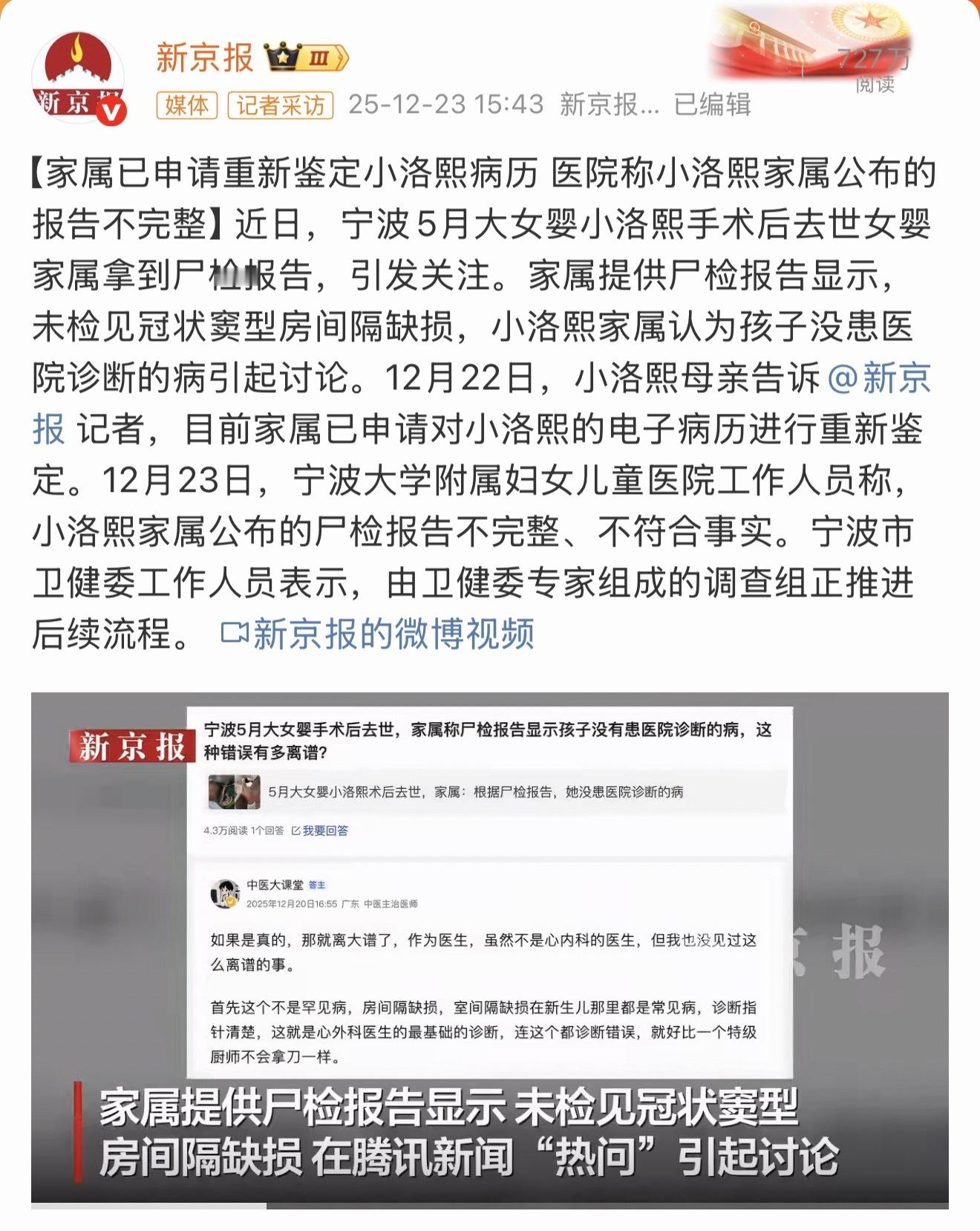 小洛熙尸检未见冠状窦型房间隔缺损家属提供尸检报告显示,未检见冠状窦型房间隔缺损,小洛熙家属认为孩子没患医院诊断的病引起讨论。无论结果如何都给大家了一个提示,生病的时候多走几家大医院咨询治疗方案没坏处!