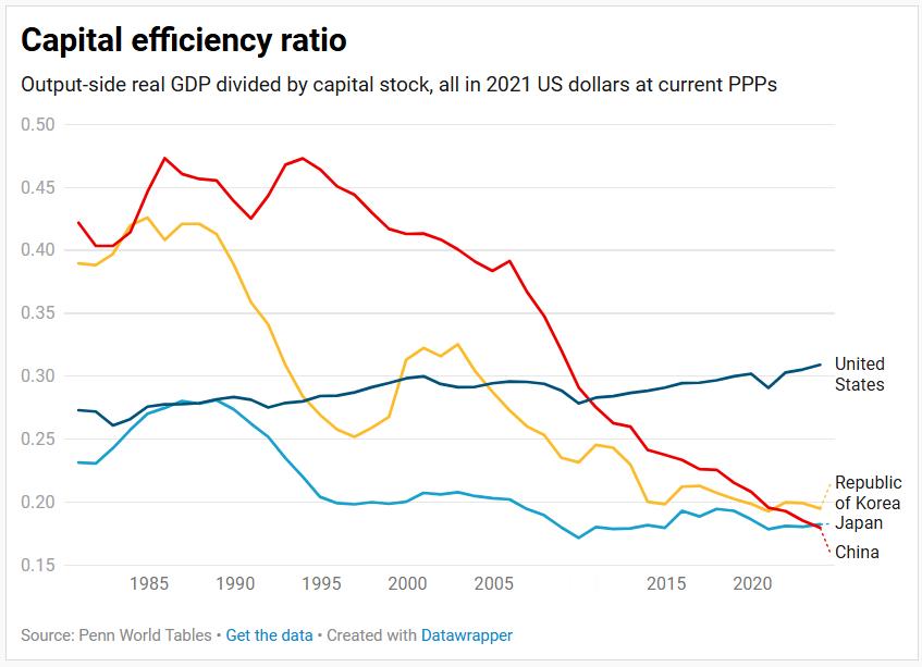 资本效率比率的长期变化趋势日本已经常受了过度投资的害处,中国目前似乎也处于类似的情况,也许人工智能的技术突破能解决过度投资带来的问题