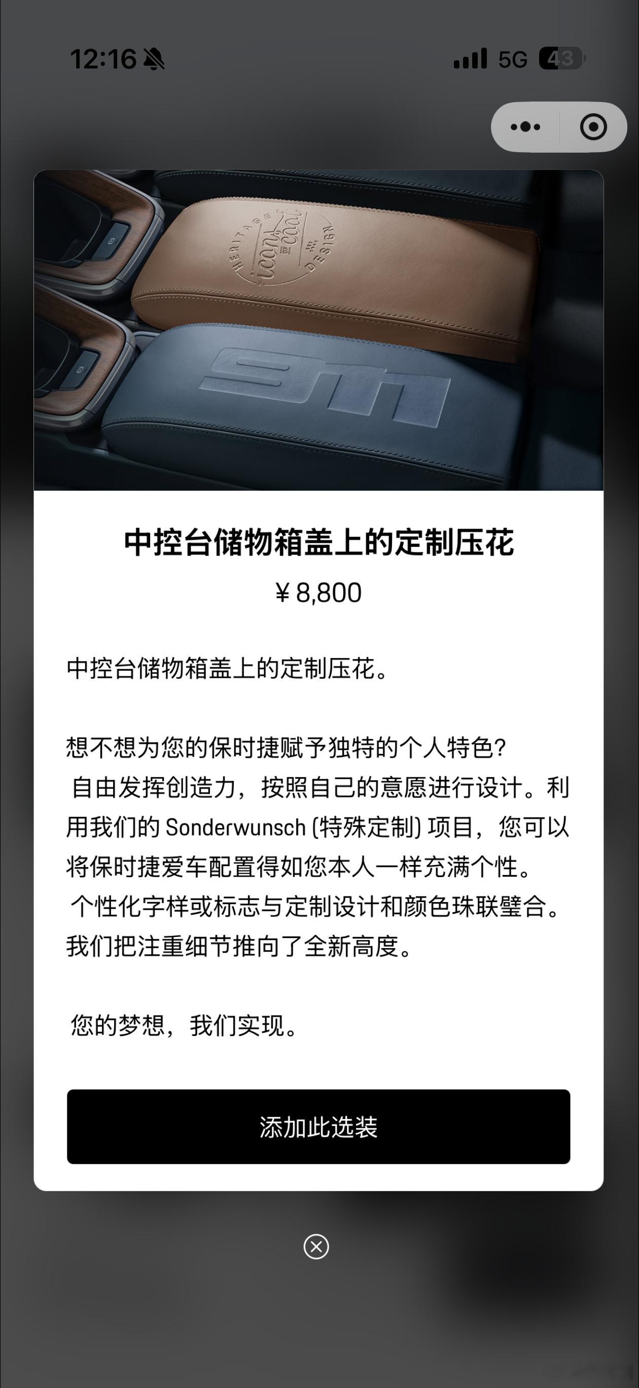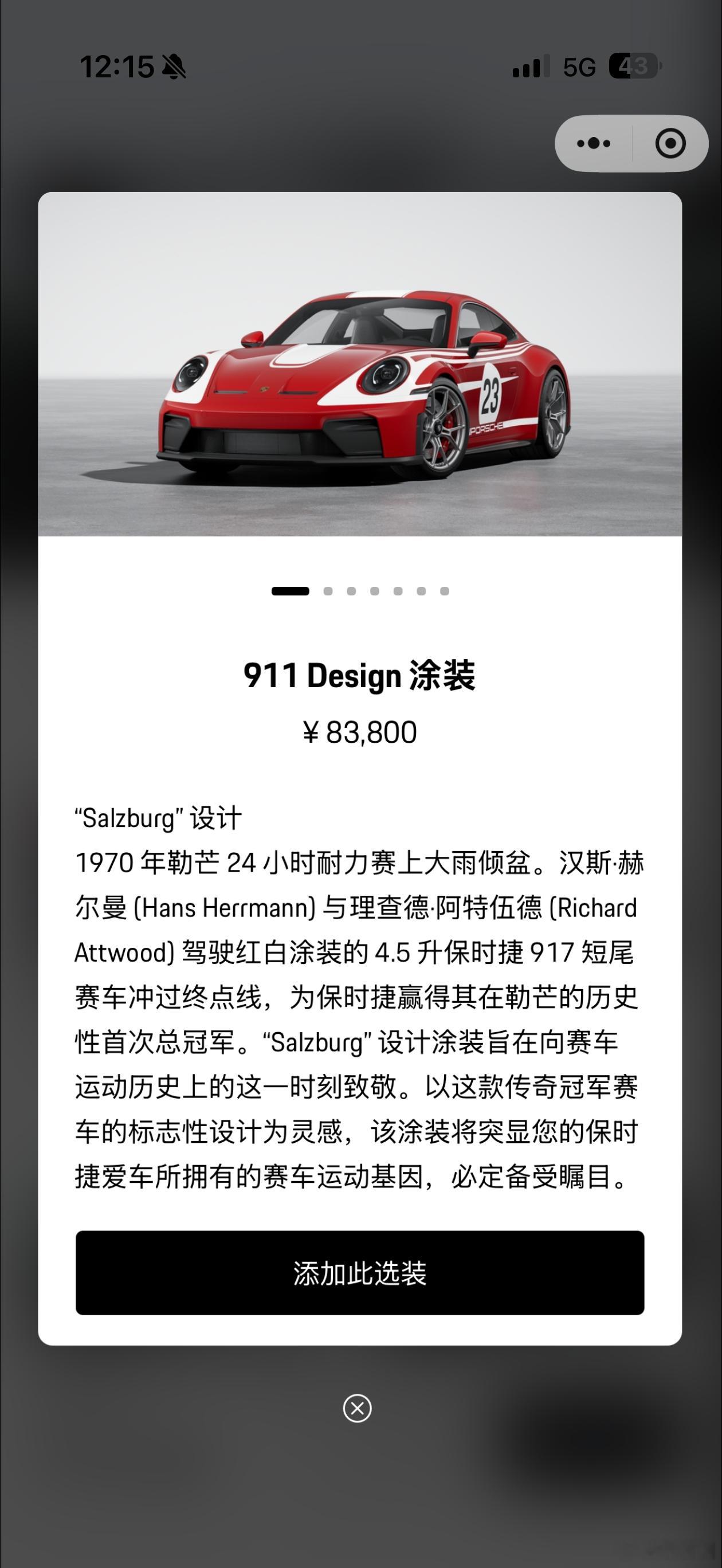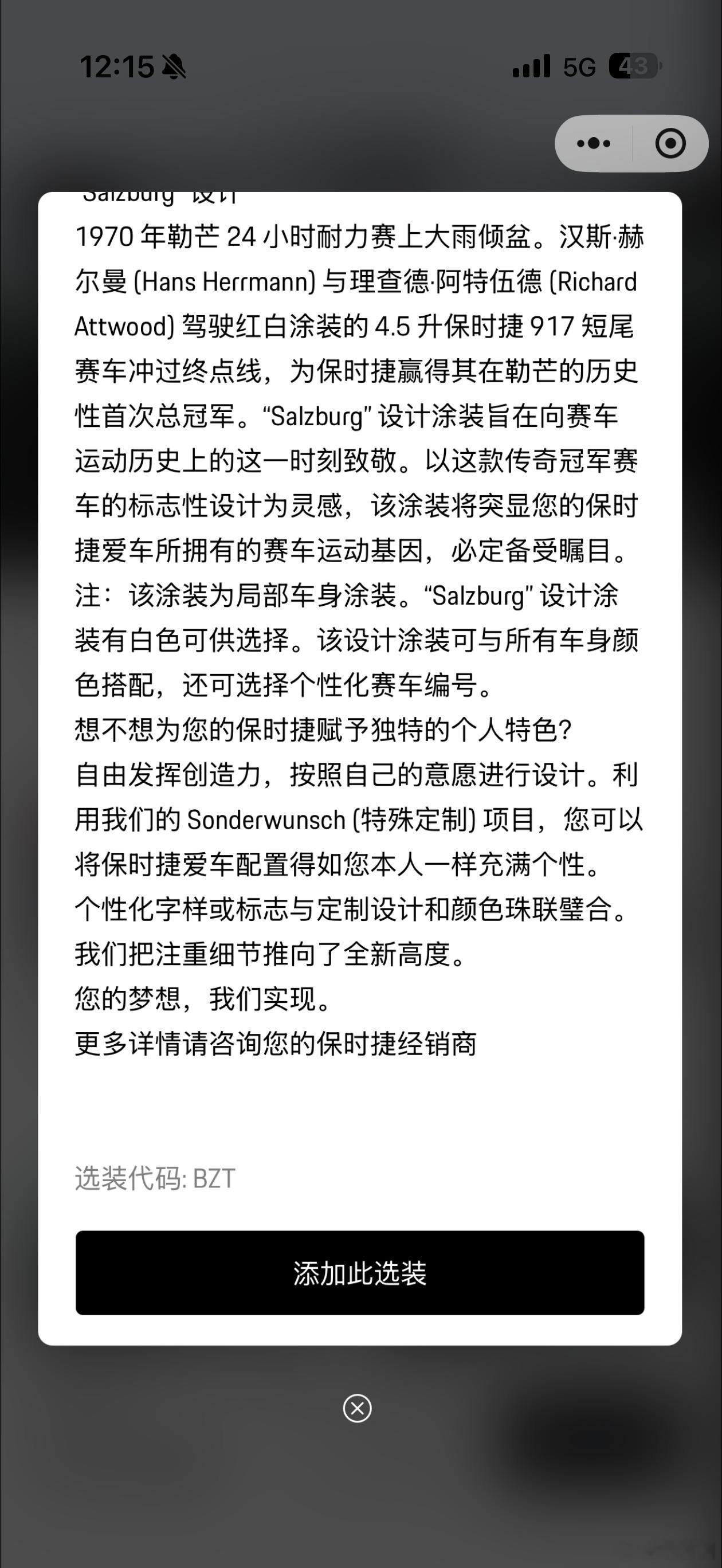 昨晚我在保时捷官网瞎选配GT3,发现保时捷的特殊定制Sonderwunsch已经在中国市场提供,外漆面还有一个超级经典的Salzburg涂装可以参考,中控储物箱盖上也可以进行深度的个性化。高端燃油车的深度个性化个人认为是后续的大方向。大V聊车