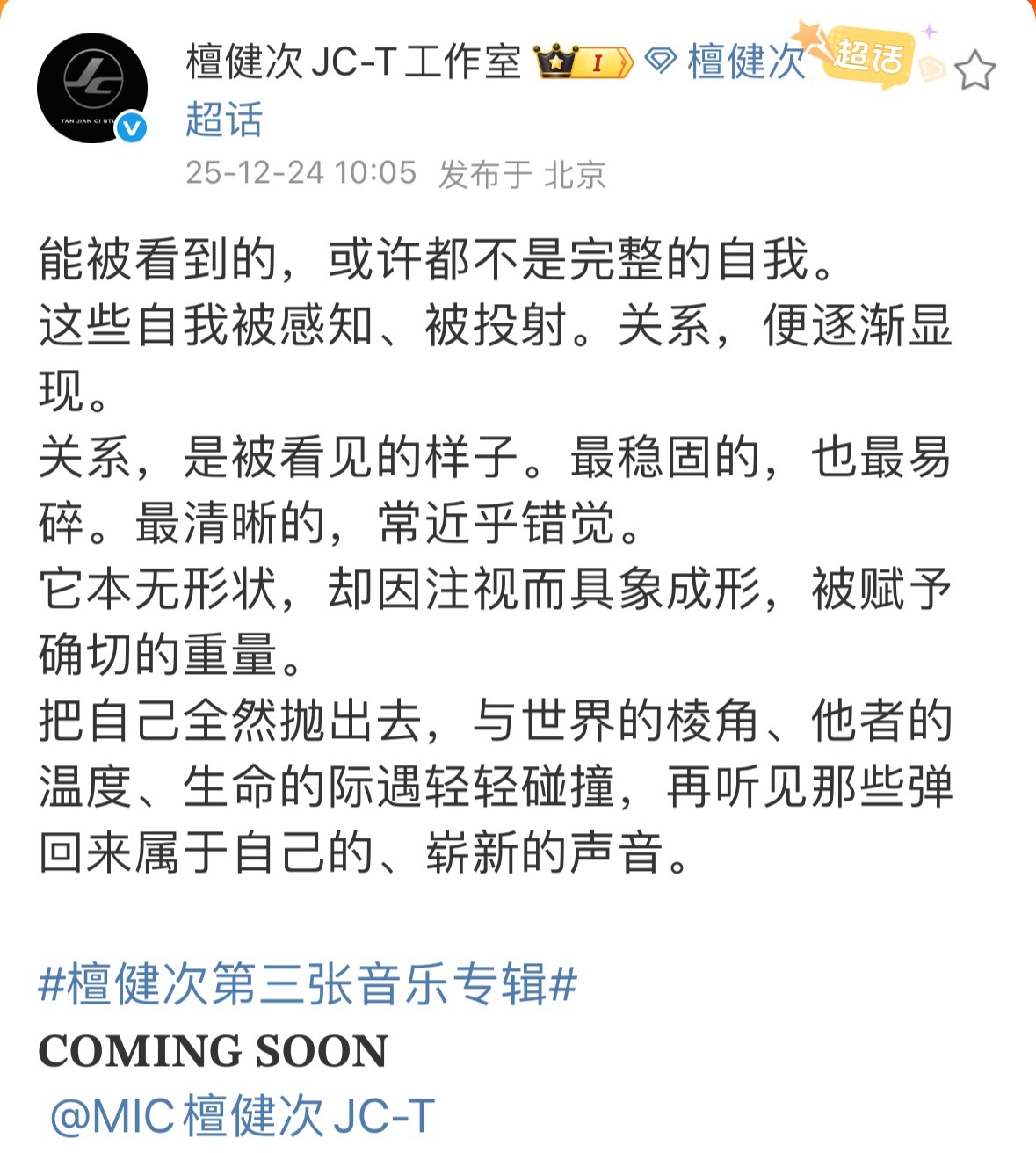 檀健次第三张音乐专辑刚去韩国录MV三专就来了,果然和导演夸的一样,檀健次业务能力强,效率高,WHAT YOU SEE IS NOT THE WHOLE(所见非全貌)好有哲学性!