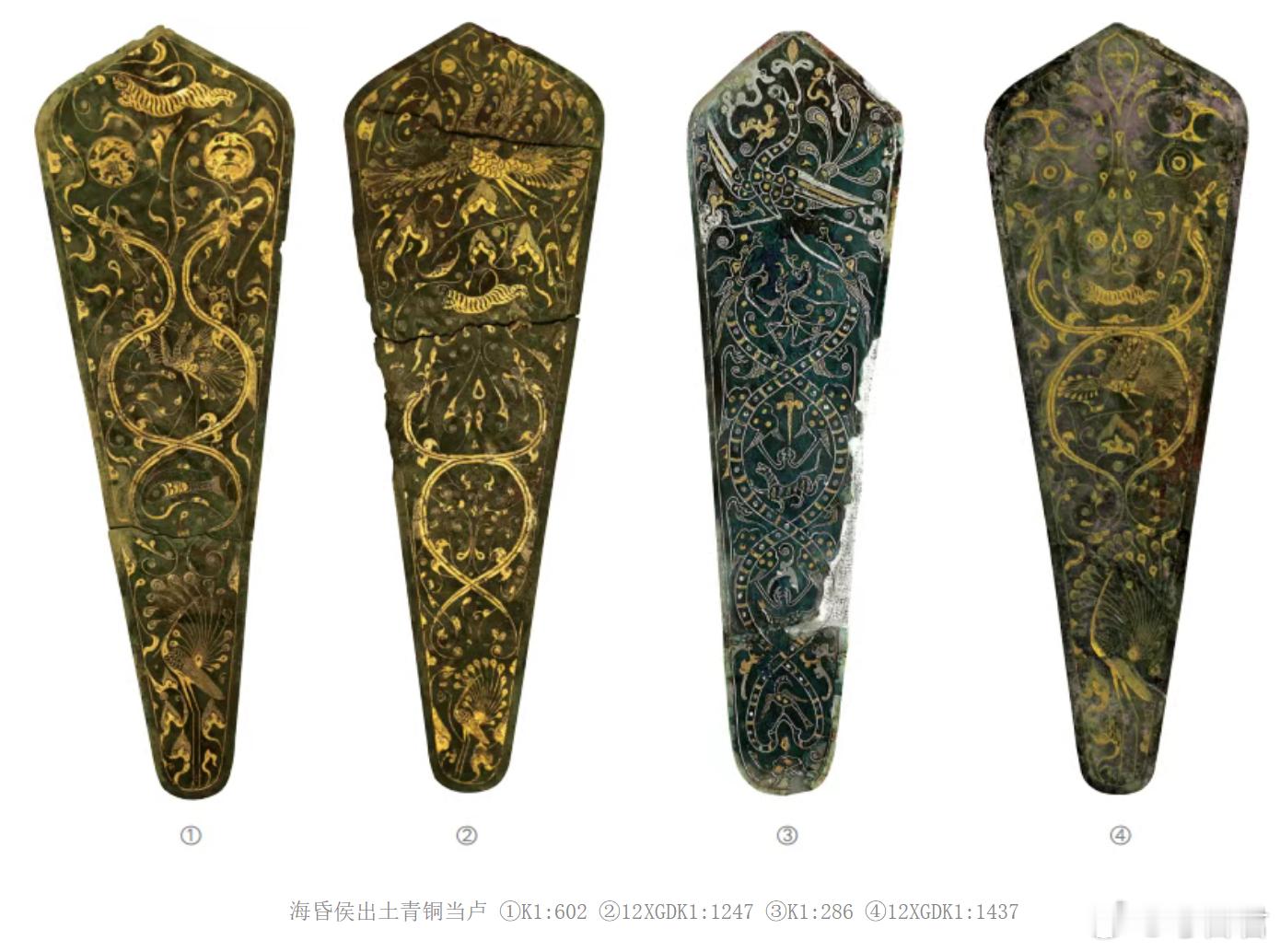 考古新知当卢中的神仙世界 一个名字有点“冷”但内涵丰富的文物——“当卢”!它是马匹面额正中间的装饰物,因为“卢”通“颅”,故称“当卢”。江西省海昏侯墓(汉废帝刘贺墓葬)出土的当卢有106件,除少量银的,基本都是青铜材质。其中有4件错金银青铜当卢尤其精美,上面的纹饰涵盖龙、凤鸟、虎、龟、玄鱼、羽人、神兽、玉兔、蟾蜍、金乌......简直是一部“汉代神兽宇宙”!有意思的是每件上龙、凤鸟、虎三个从不缺席,这些纹饰并非随意组合,向我们展示了古人对超越生死、飞升仙界的愿望,并且展示了海昏侯刘贺与汉代贵族阶层对死后灵魂跻身仙界的强烈追求。