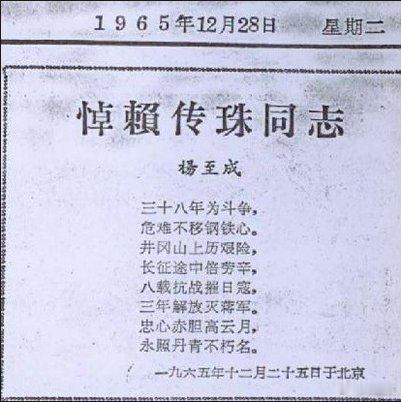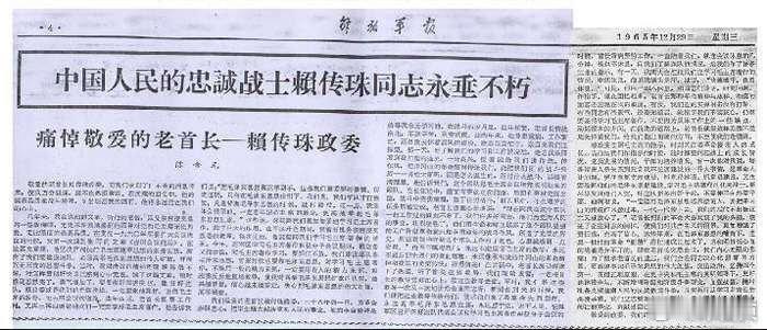 我们深切缅怀中国人民解放军开国上将,沈阳军区第二政治委员赖传珠将军逝世60 周年(1910年4月3日-1965年12月24日)江西省赣县人。1955年被授予上将军衔。1927加入中国共产党。1928年初参与领导赣县大埠农民武装暴动。同年3月参加工农革命军,历任红四军第二纵队第四支队第十二大队党代表、第四支队政治委员、第十一师第三十一团政治委员、第三十三团团长兼政治委员,红五军团第十三军政治部秘书长、第三十七师政治委员,红五军团政治部地方工作部部长、第十三师政治部主任,红一军团第二师第五团政治委员、第一师政治委员、红一军团组织部副部长等职。抗日战争时期,历任新四军江北指挥部参谋长等职。皖南事变后,任新四军参谋长,兼抗日军政大学第五分校副校长。解放战争时期,历任人民解放军第四十三军政治委员、第十五兵团政治委员等职。中华人民共和国成立后,历任北京军区政委、沈阳军区第二政委等职。第二届、第三届国防委员会委员。1965年逝世。