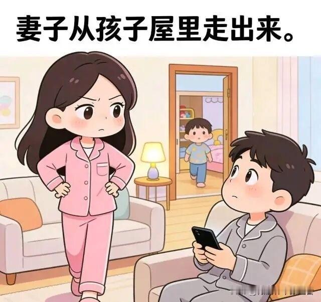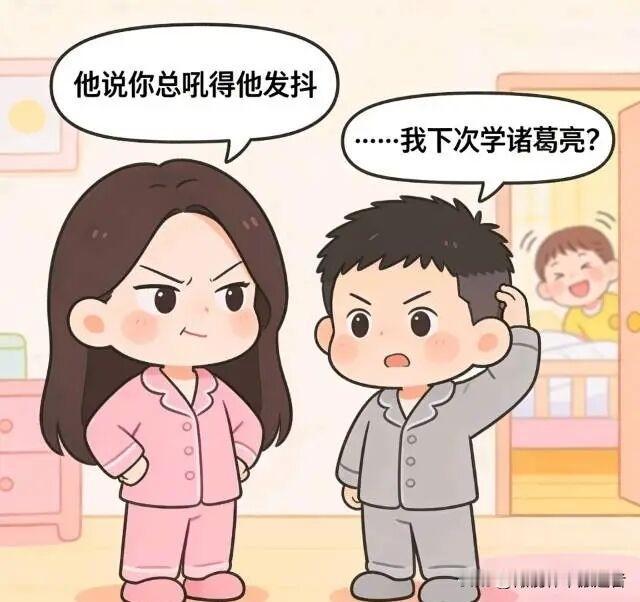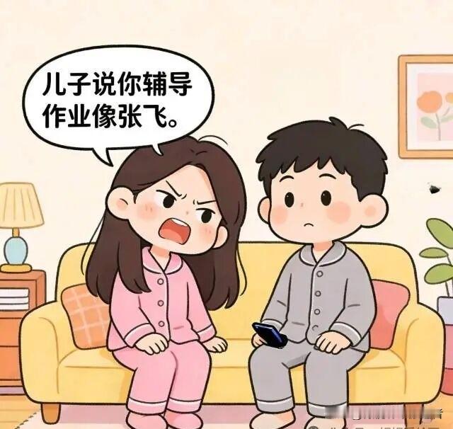 趣味漫画:妻子从孩子屋里出来,妻子说:“儿子说你辅导作业像张飞。”丈夫:“那是勇猛!”妻子:“他说你总吼得他发抖。”趣味小漫画 搞笑漫画夫妻