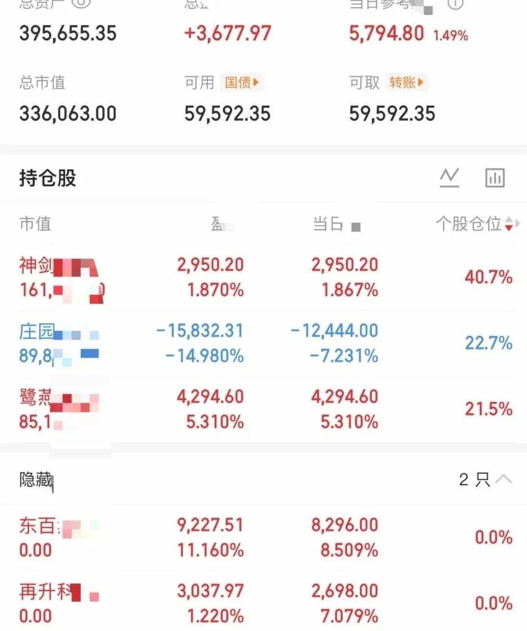 大曾子又乱操作了!庄园明显就是三板组的票,昨天还去抄底,今天果然又是差点跌停开盘,不过他依然选择格局,肯定是想着主力还会拉吧,东百应该是卖飞了,早上航天板块强势回流,大曾子打了最高标神剑,再升格局了这么久依然卖飞了,又低吸了燕子,燕子没板块支持,还不如商业航天,明天搞不好要跌停了,总的来说,其实今天也不怎么好出手的