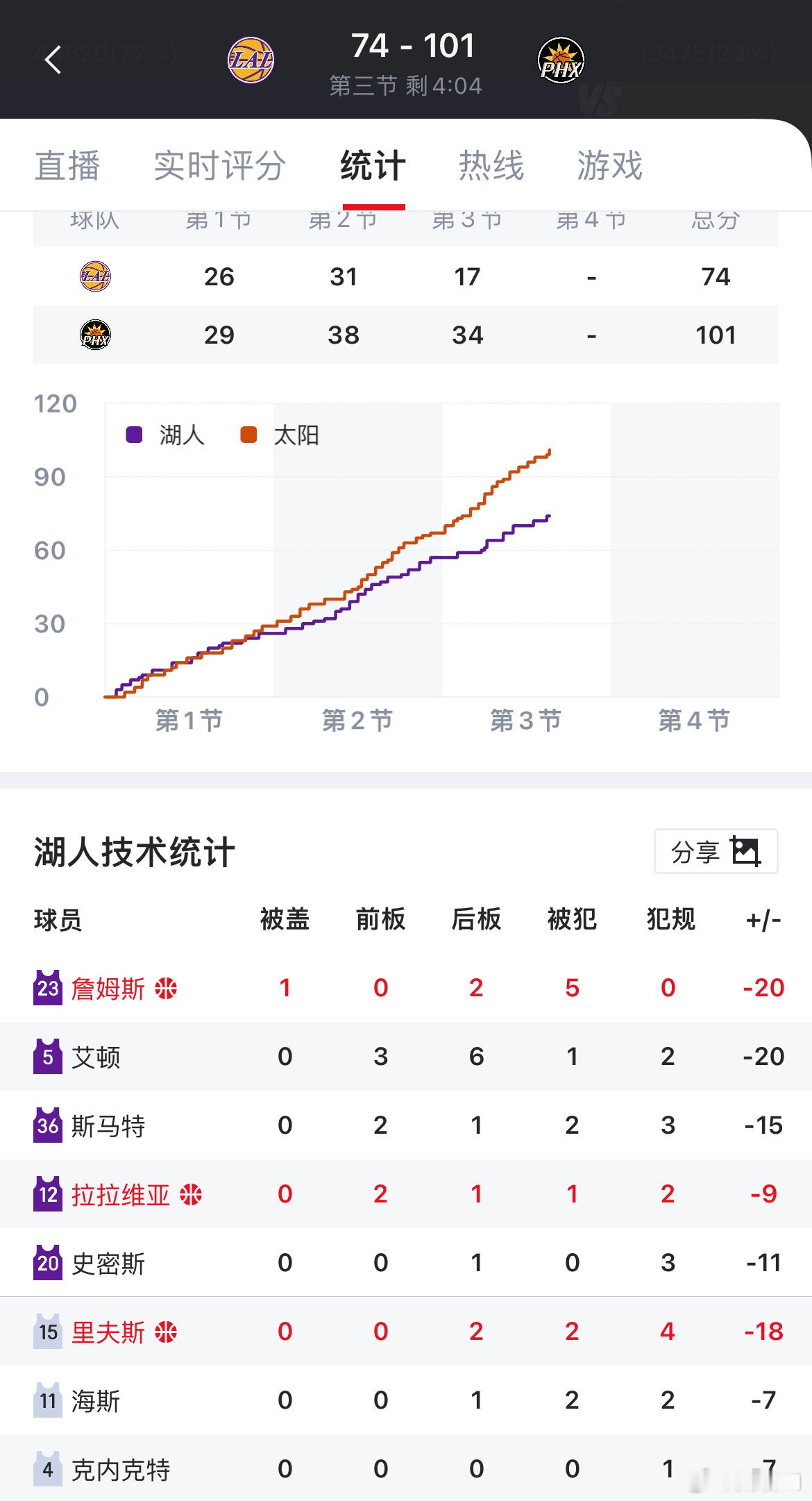 太熟悉了,22年威少不打,詹姆斯带队狂输30分,今天同样如此湖人vs太阳