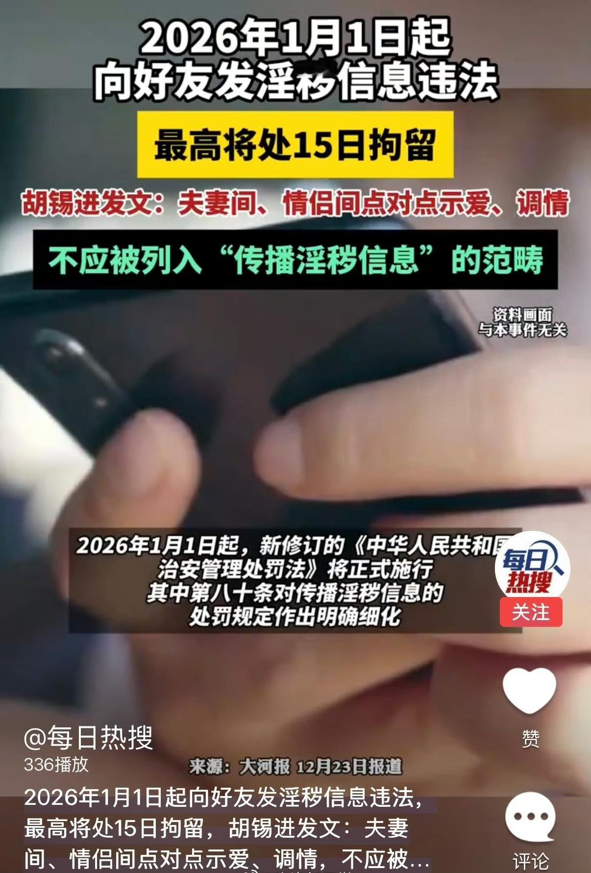 胡锡进:夫妻、情侣间点对点示爱、调情,不应被列入“传播淫秽信息”的范畴 ! 老胡中肯,敢于直言!老胡这事您放心,您和老伴儿点对点儿玩,应该没事的!