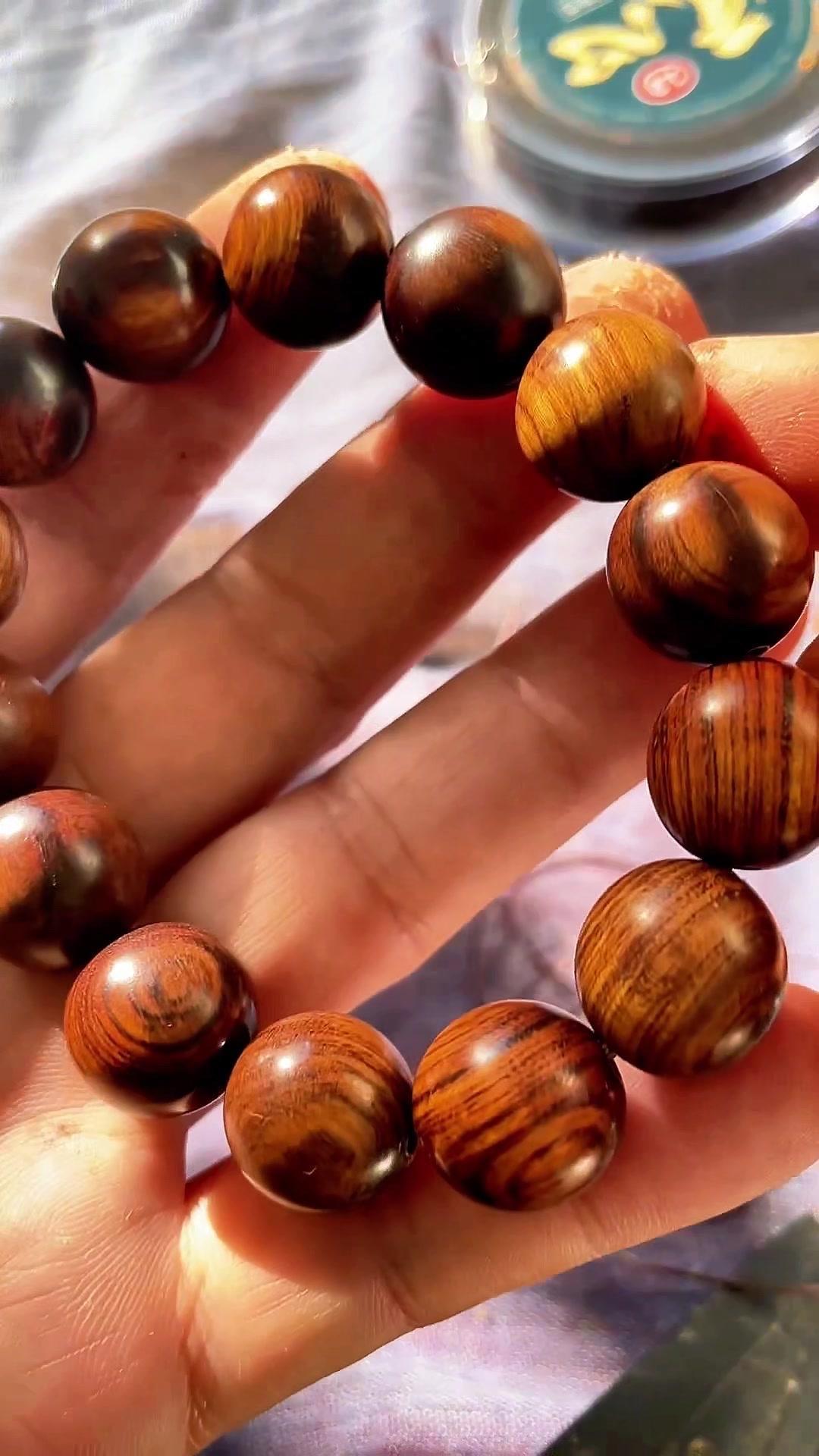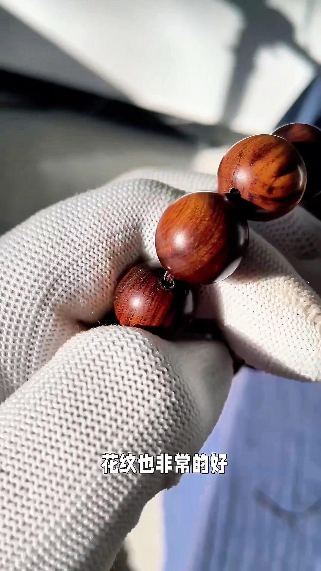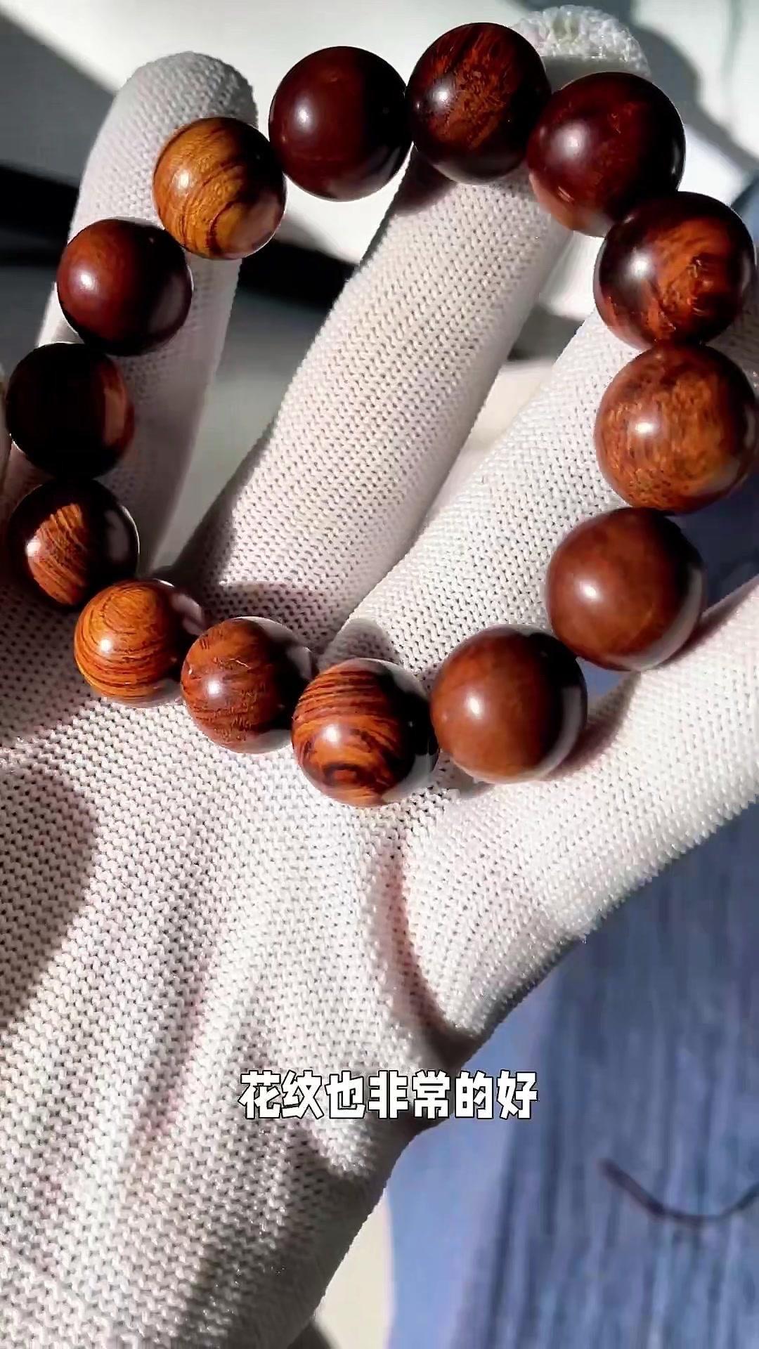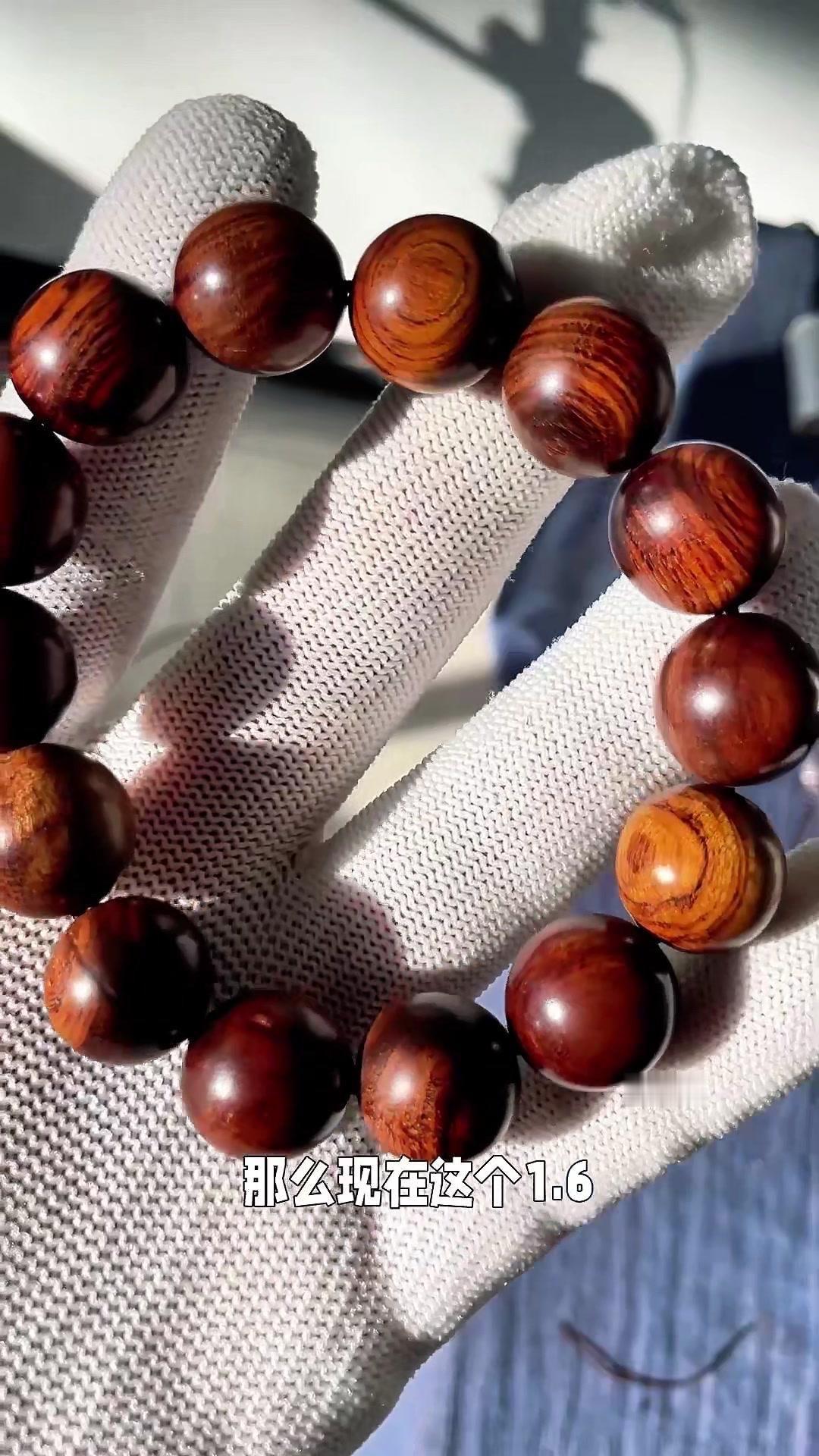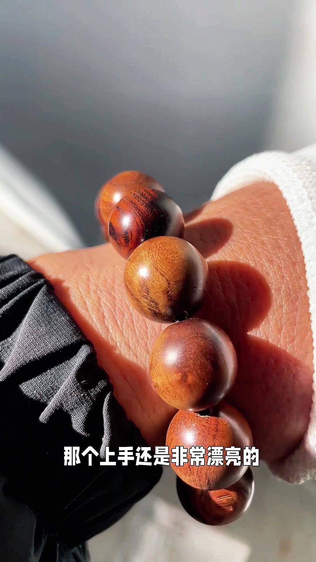 上次水冲料做1.8手串效果很好,河南朋友定制了1.6的,今天开始下料。 这截料还很粗,本以为能做几串,结果有些裂了,裂掉的部分就用不了。 切割机切的时候都冒烟了,好在花纹很赞,开始车珠子。 一点点把珠子抛出来,上手特别漂亮,就是我的手太大,戴在手上显得小了点,不过整体很精致。