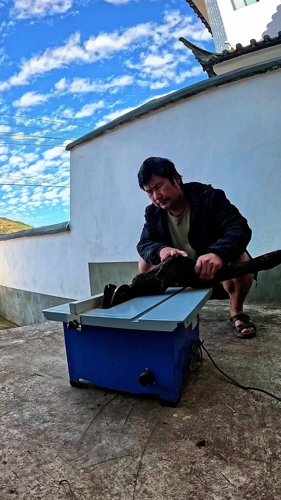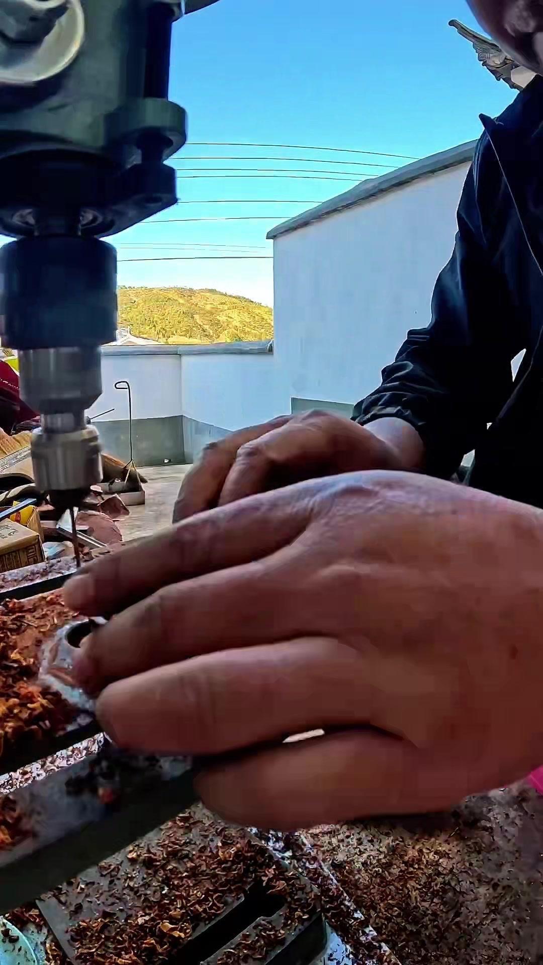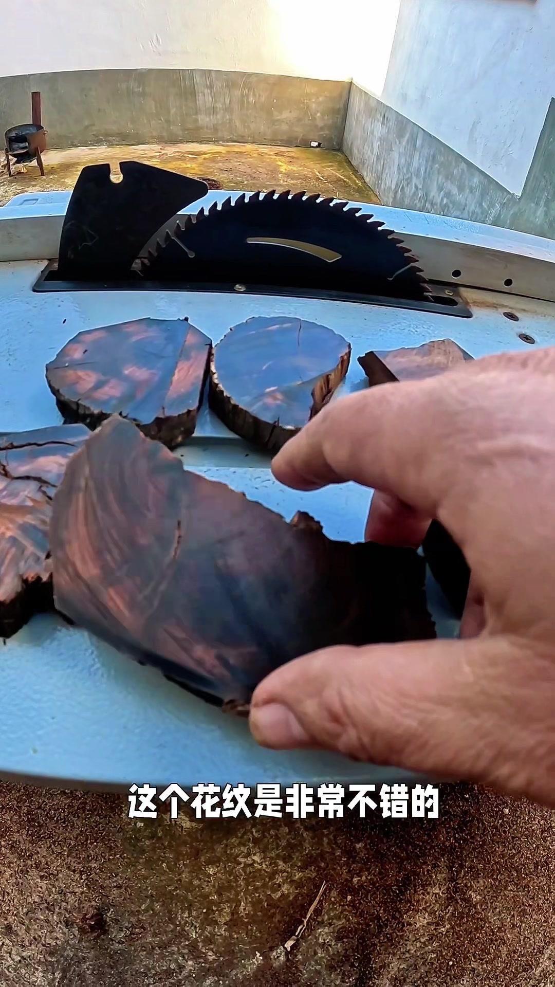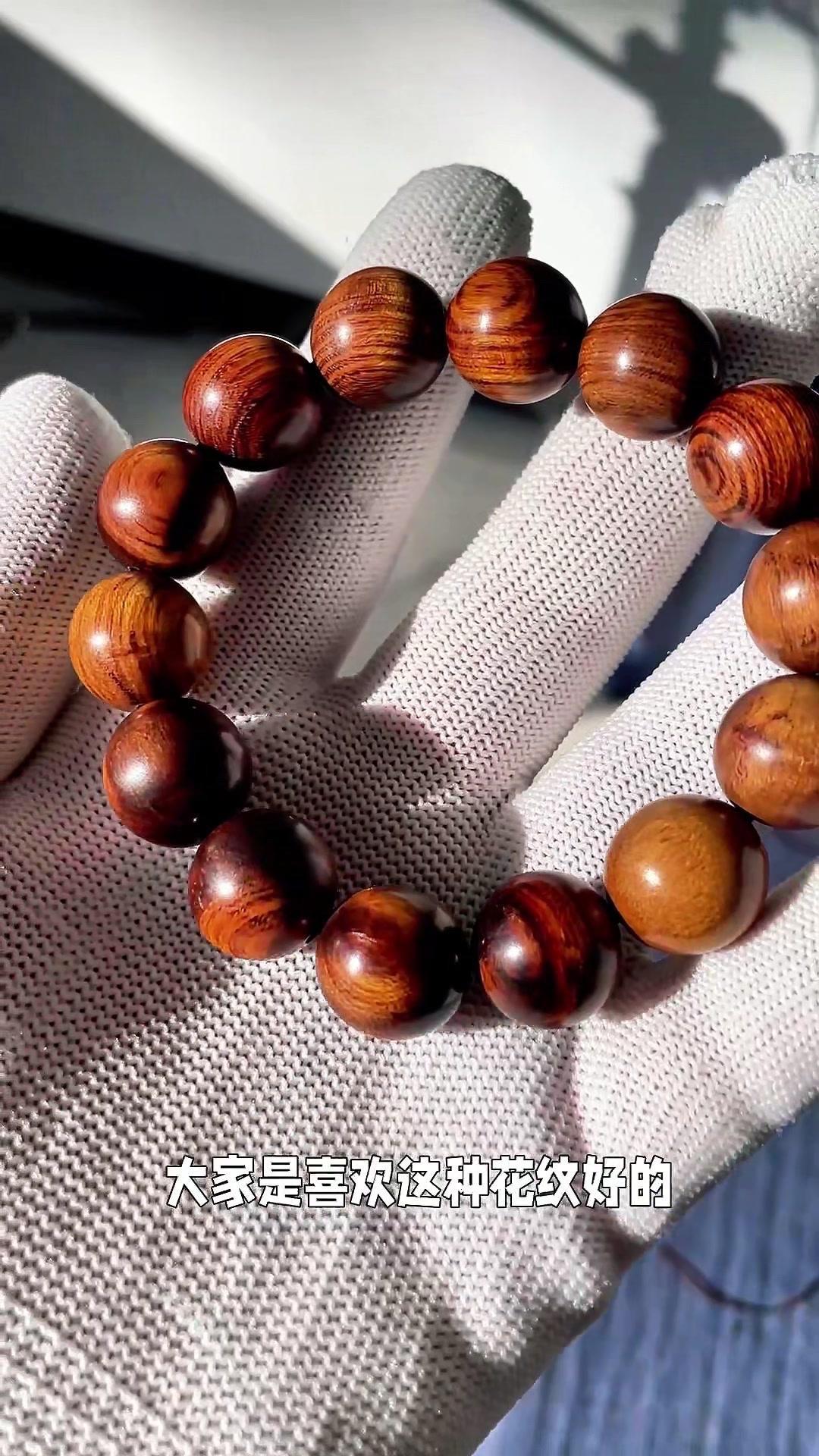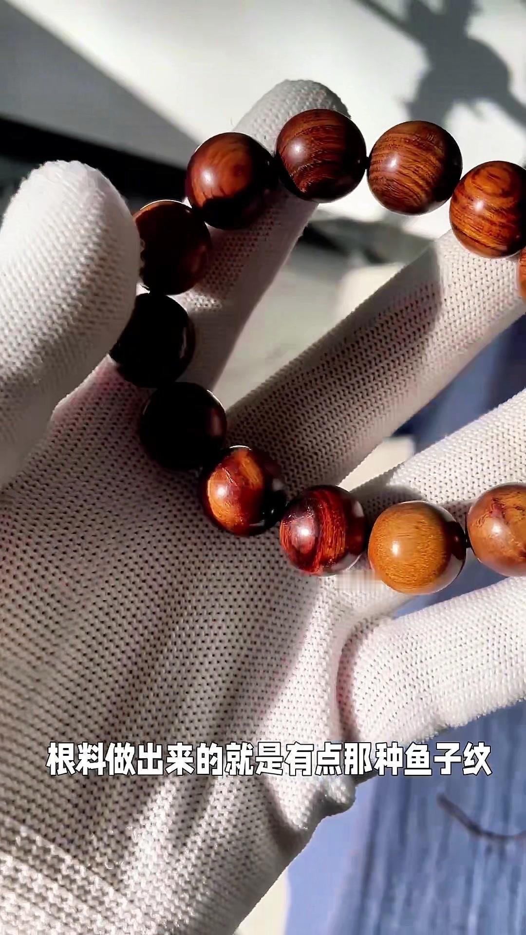 上次水冲料做1.8手串效果很好,河南朋友定制了1.6的,今天开始下料。 这截料还很粗,本以为能做几串,结果有些裂了,裂掉的部分就用不了。 切割机切的时候都冒烟了,好在花纹很赞,开始车珠子。 一点点把珠子抛出来,上手特别漂亮,就是我的手太大,戴在手上显得小了点,不过整体很精致。