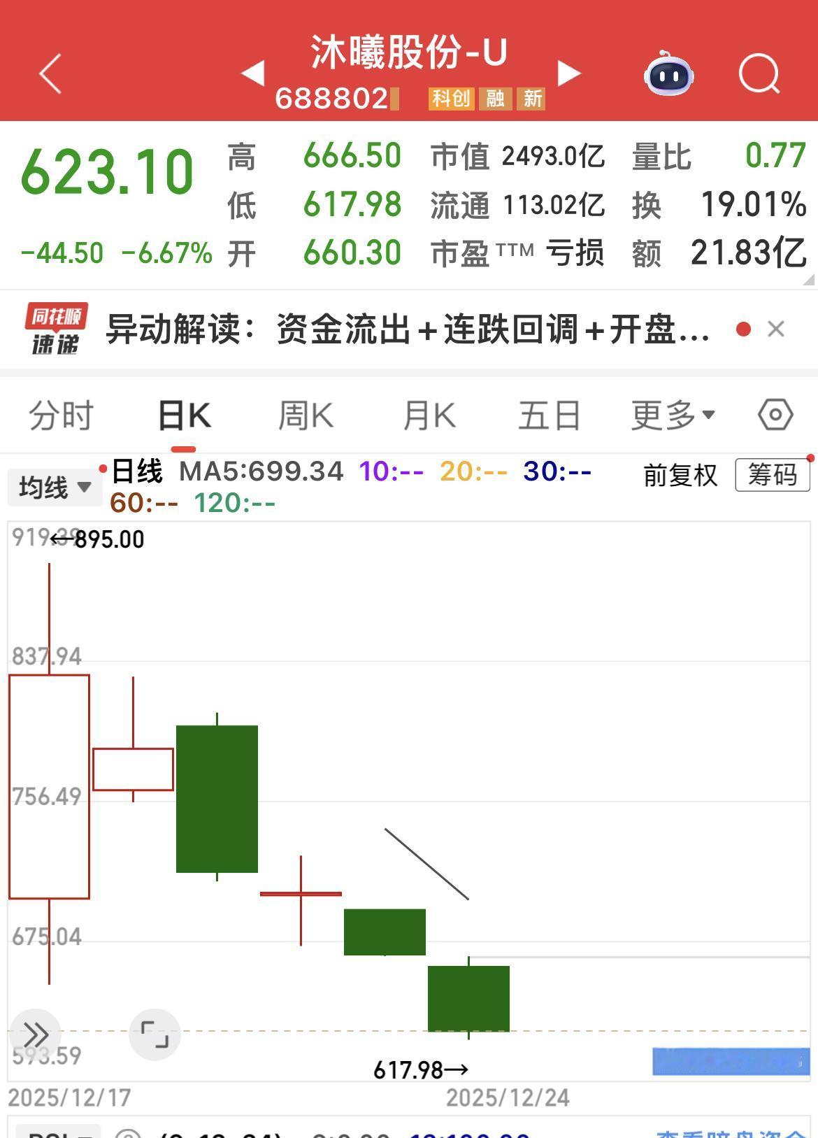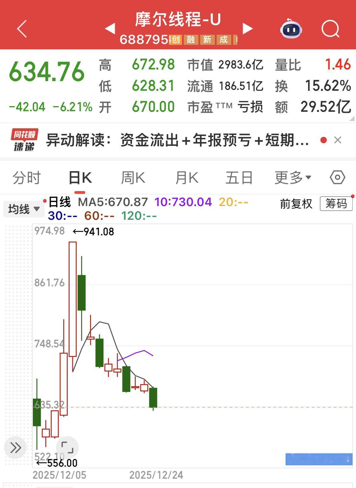 摩尔线程最高最高941元,目前634元,从高点回调超30 %! 沐曦股份最高895元,目前623元,从高点回调30 %! 一场游戏,一场梦!