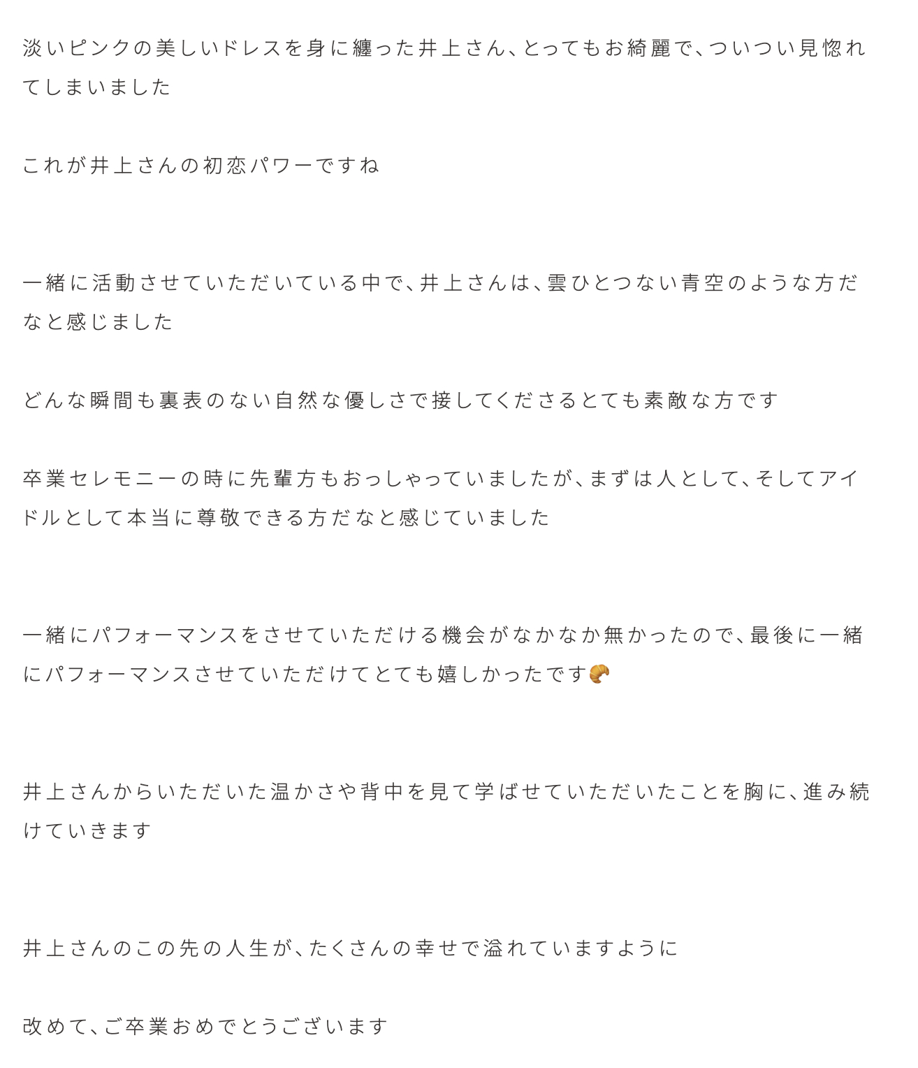 浅井恋乃未「誕生日が近かったということもあったので、ミーグリでもたーくさんお祝いをしていただいて!!ありがとうございました✨あんなにたくさんの方にお祝いをしていただいたのは初めてで、とーっても幸せ!!!20歳として過ごした1年は本当にあっという間で、櫻坂46に加入させていただけて、Buddiesの皆さんとお会いすることができて、新しい経験をたくさんさせていただいて…数えきれないほどの思い出を作ることができて幸せでした」