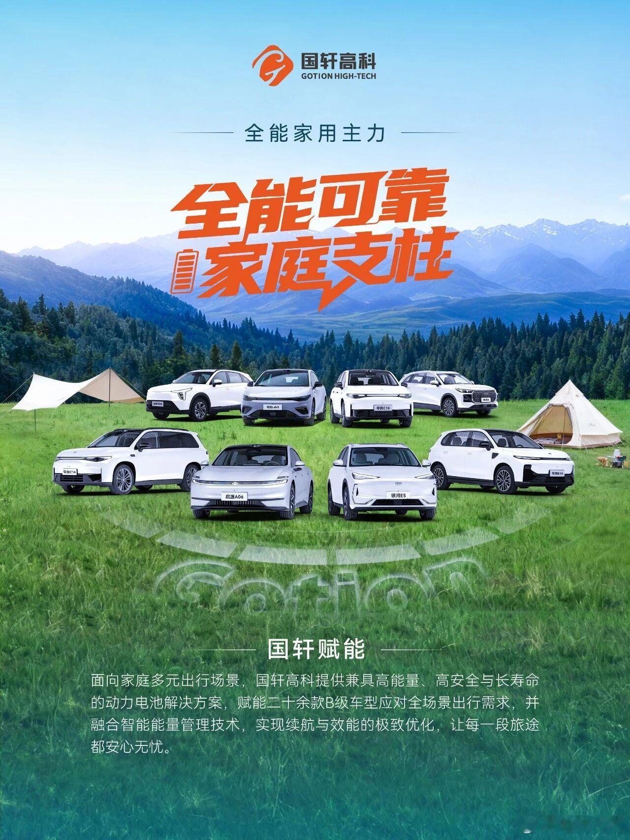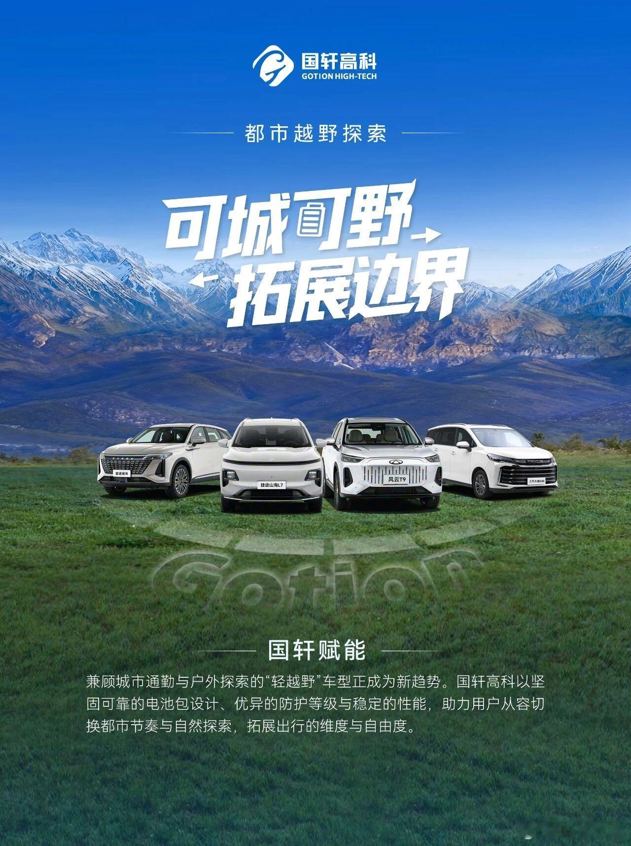 从都市到野外,国轩高科为全场景出行注入芯动力!从城市微行到家庭主力从高端驾乘到跨界探索国轩高科始终以技术创新为核心为不同用户场景提供精准能源解决方案为每一款合作车型注入“芯”动力国轩高科