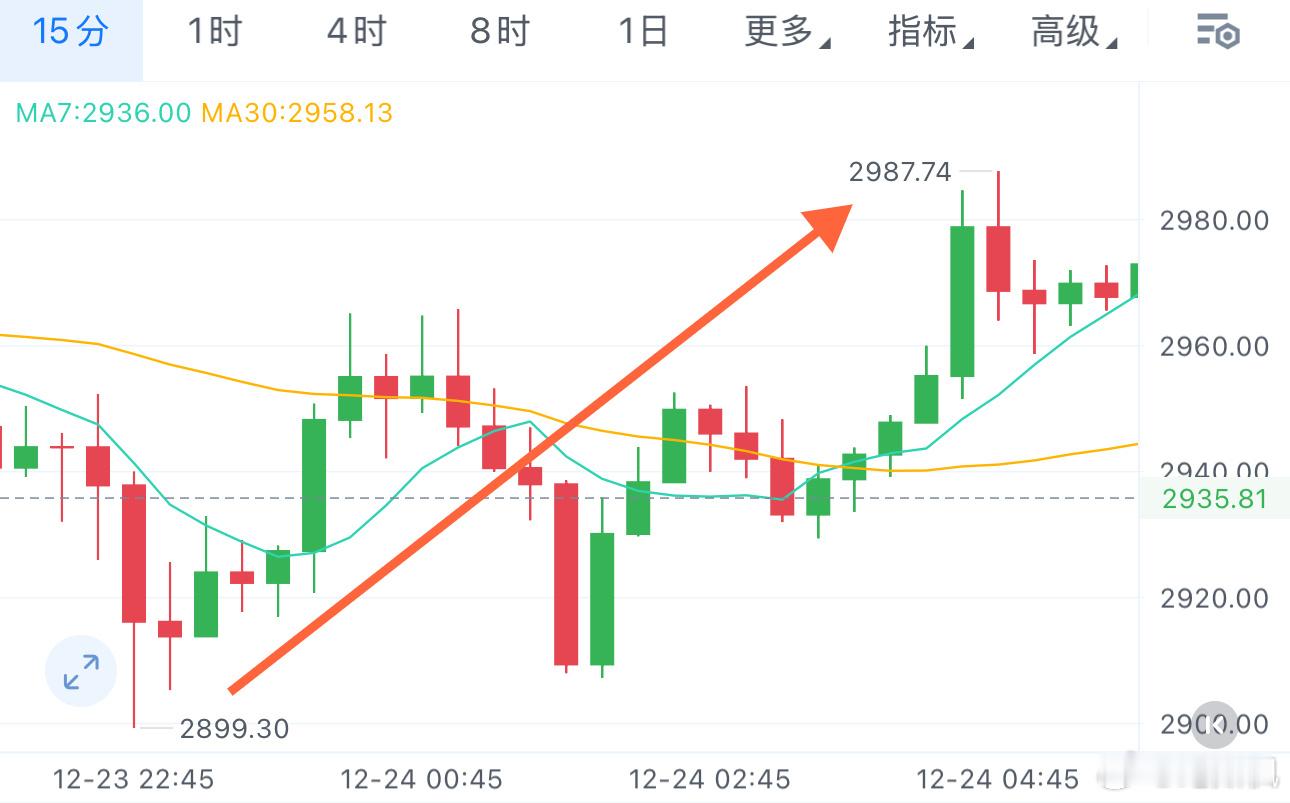 昨晚多箪,大饼凌晨抵达88300二饼触及2987。昨晚没接到的刚刚回踩也给到机会了,日内依旧低多上看,目标依旧88500-89000,2980-3030。