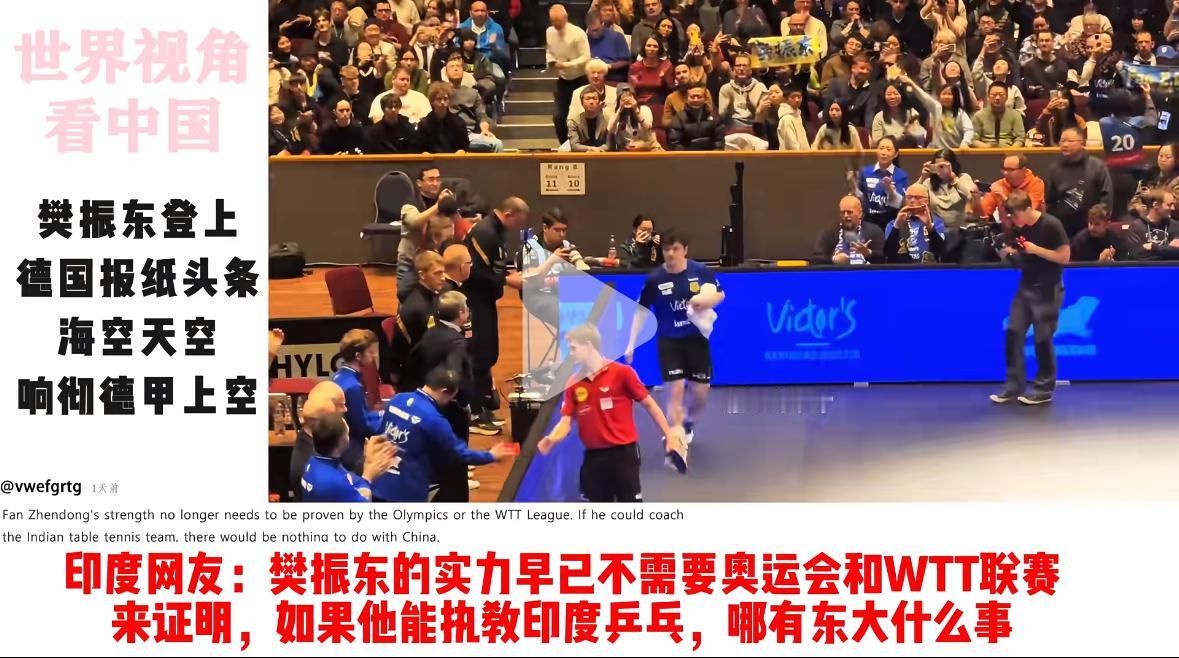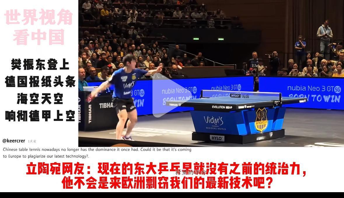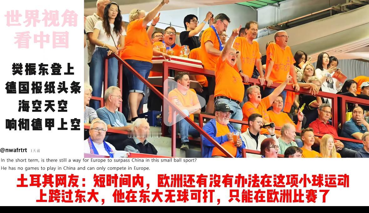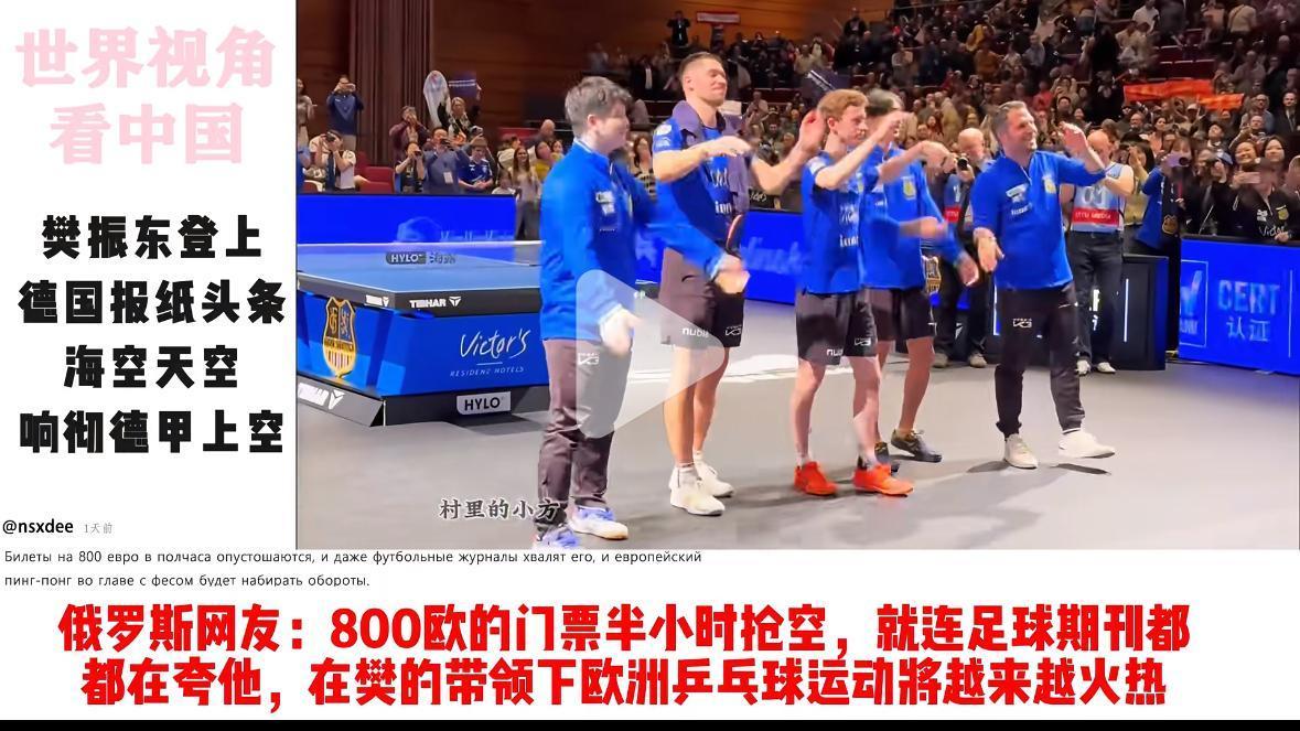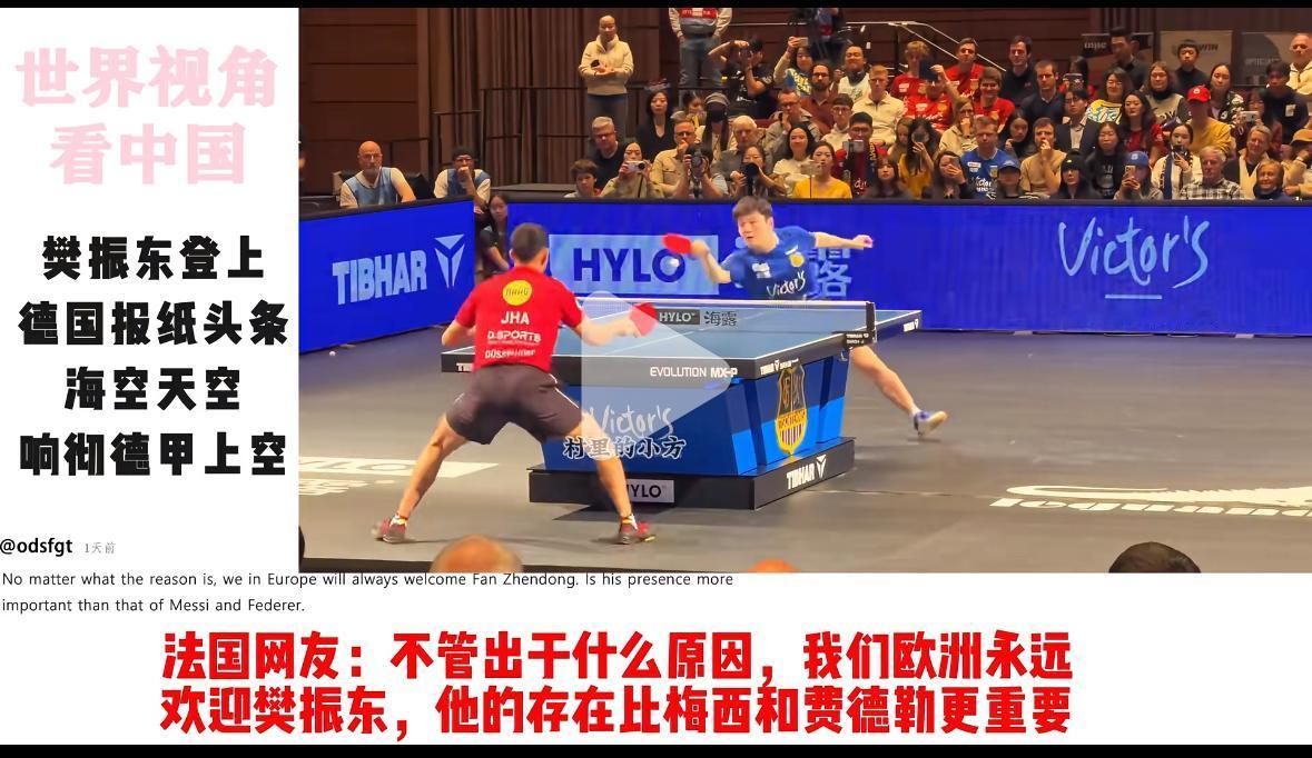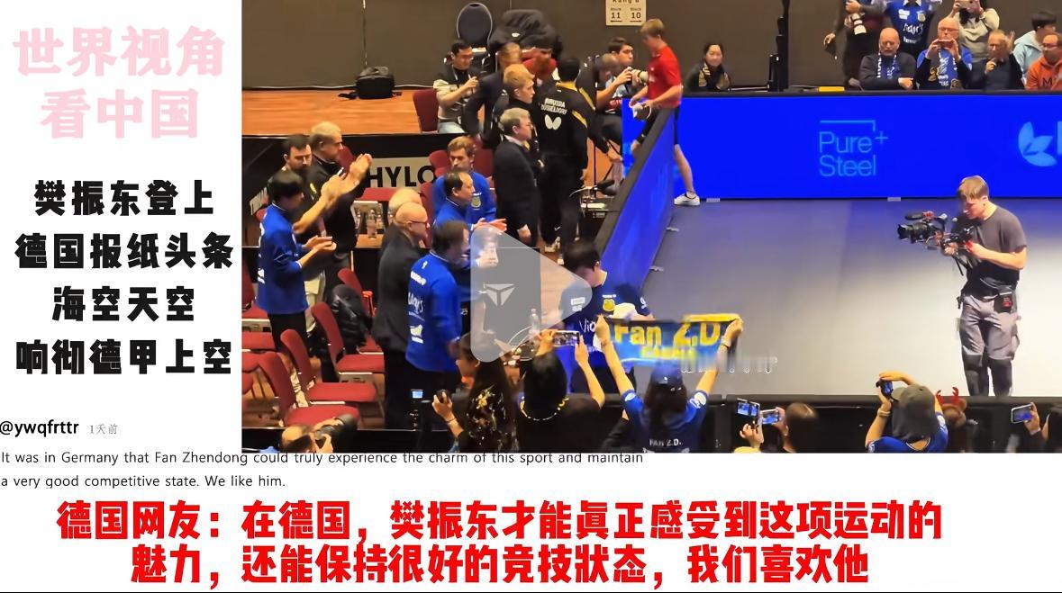 樊振东登上德国报纸头版头条——海阔天空响彻德甲赛场 外网:他的存在比梅西 、费德勒更重要! 美网友: “如果不是樊振东加盟, 德甲的收视率不会超过WTT, 樊振东一个人改写了整个乒乓球 运动的格局!” 韩网友: “应该请樊振东来韩国打球 , 东大的联赛和球迷配不上他的 成就和实力!” 俄网友: “800欧的门票半小时售空, 就连足球期刊都在夸樊振东, 在樊振东的带领下, 欧洲乒乓球运动将越来越火热!” 日网友: “巴黎奥运会樊振东在0:2的情况下 击败张本,直接将我们的乒乓球天才打服,这是我们的意难平!” 立陶宛网友: “现在东大乒乓球早就没有之前的统治力,他会不会来欧洲剽窃我们的技术!” 法国网友: “不管出于什么原因, 我们欧洲永远欢迎樊振东, 他的存在比梅西、费德勒更重要!” 印网友: “樊振东的实力早就不需要奥运会和 WTT来证明,如果他能执教印乒乓球,哪有东大什么事!” 德国网友: “在德国,樊振东才能真正感受到 这项运动的魅力,还能保持很好的竞技状态,我们喜欢他!” 墙内开花,墙外香, 外协都愿意樊振东出去打球, 甚至是执教, 他们也非常了解樊振东 在国内的处境, 相信樊振东才是乒乓球推广大使, 逆风翻盘的真男人! 我也认为德甲的收视率超过WTT, 不一定是数量超, 而是覆盖面, 是整个国民关注度很高……!