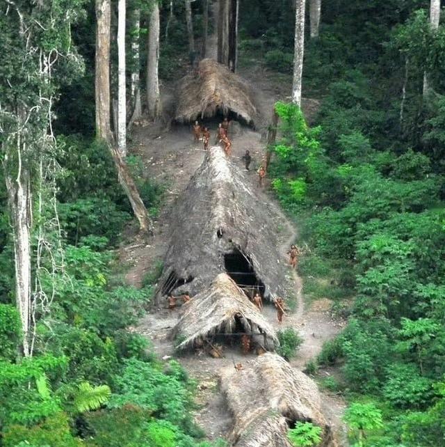 无人机拍到亚马逊森林里的原始部落。 巴西土著管理机构FUNAI通过无人机航拍巴西北部雨林深处部落,记录到16名土著居民的活动。拍摄目的旨在保护其免受非法代木者威胁并证实部落存在。 部落居民对无人机表现出惊恐或攻击行为(如投掷长矛、弓箭),凸显其视无人机为威胁。 尽管士著管理机构声称“绝不主动接触部落”,但还是被批“科技入侵”,可能破坏部落与世隔绝的状志。 要是无人机丢下它拍的他们的纸质照片,当他们看到了,会咋想?!!!世外来物! 尽
