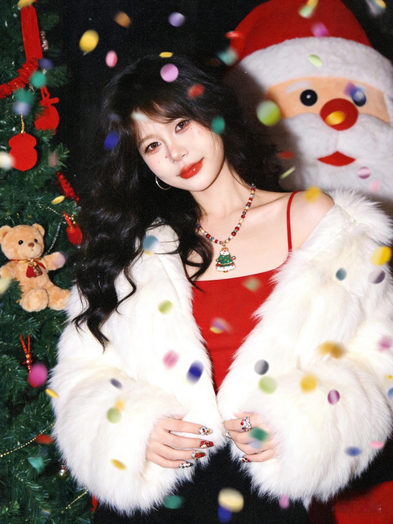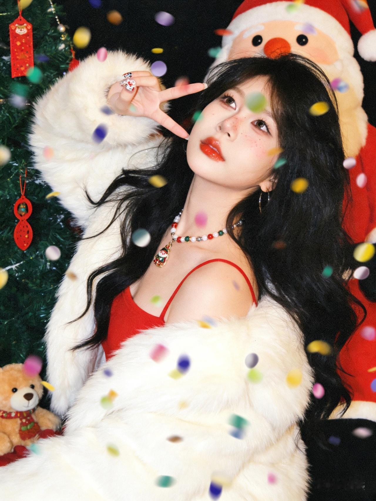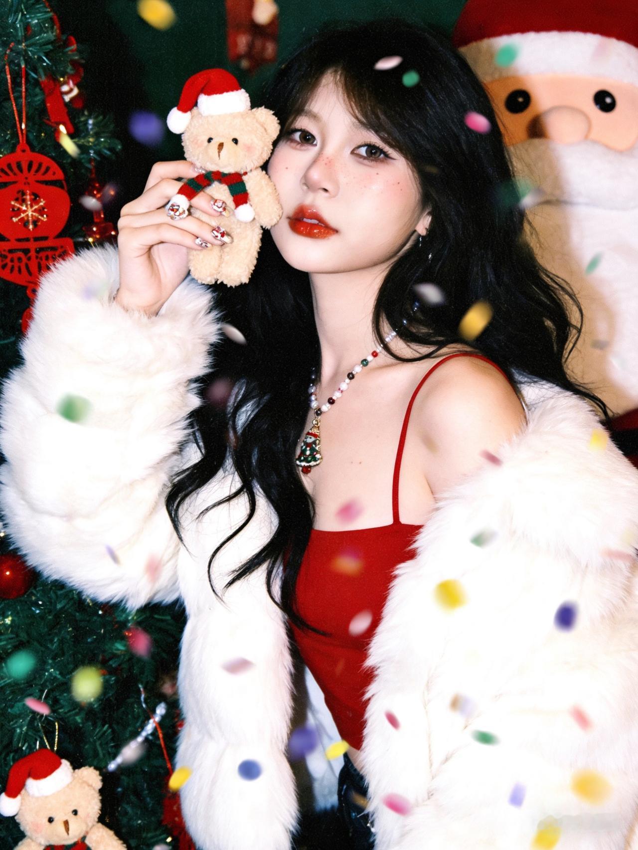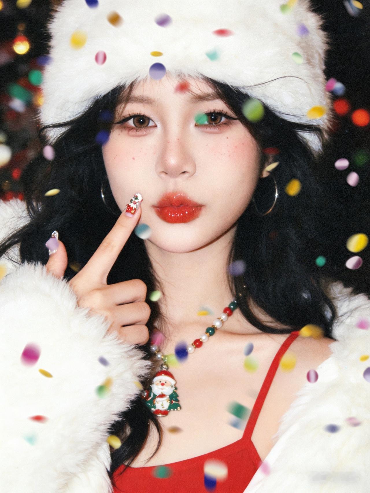 豆包被调教的太好了吧!口令在这可以自取,等你们作业😁 指令:生成10张照片,3:4比例,保持人物长相百分之百不变,人物动作、取景和角度丰富(取景涵盖半身、脸部近景、脸部特写)。 人物造型:内搭红色细吊带上衣,外搭厚实蓬松的白色仿毛冬季外套。头发颜色为自然黑色,头发呈散落的大波浪或水波卷。 妆容与肤色:妆容风格偏千禧年风格,面颊与鼻子上有粉色腮红,嘴唇为偏红橘色的水润质感唇妆,肤色白皙细腻,带有淡淡粉色调。指甲为精致修剪的美甲状态 每一根手指都做立体圣诞主题的装饰美甲 佩戴珠串项链,吊坠为圣诞主题图案。 场景:整体为圣诞派对氛围场景,画面左侧有装饰着红色挂件的圣诞树,并放有一只小熊玩偶,画面右后方有一只巨大的圣诞老人毛绒玩偶,画面前景有彩色纸屑飘落,带有运动模糊效果。 摄影:使用直打闪光灯的拍摄效果,整体风格为复古胶片感、略带千禧年风格,画面具有明显的胶片颗粒与噪点质感,主色调以鲜艳的红色、绿色与白色为主。 圣诞写真 豆包指令 圣诞的100种打开方式 甜妹穿搭