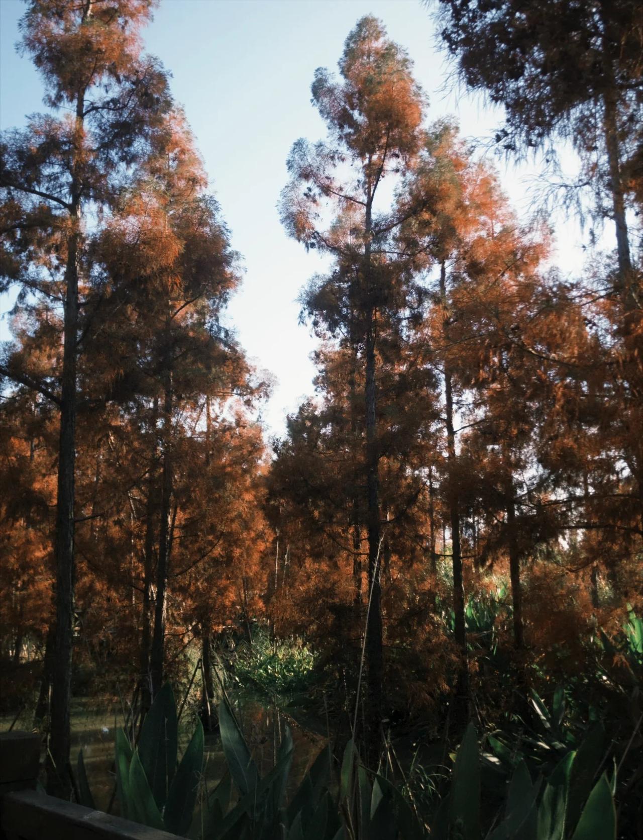 三洋湿地 分别从北入口、西入口进去 两边都很美 两次去天气也都超级给力 一边是芦苇 一边是红杉林 都很治愈 附上红杉林路线指引 1. 从三洋湿地**西门**进入,沿主路前行(道路两侧可见落羽杉),目标为木栈道与水杉林区域。 2. 遇到左手边**第一座桥**,过桥后下桥右转,途经大可营地。 3. 继续前行至**第二座桥**,过桥后重点关注左手侧,此处有明显的局部导览图及路标。 4. 沿路标指示上台阶,正式进入木栈道区域(初始段为花岛花溪)。 5. 在木栈道第一个路口**右转**,通过小木桥后直行一小段,即可抵达木栈道水杉林。 (转载自网友) 芦苇的话北门进去经过两座桥再往前走就有,左手边是家思牧场,有一小片芦苇和小鹿;再往前走右手边会有一大片,只要勇于前进探索就能出片! 留住秋天的一百种方式