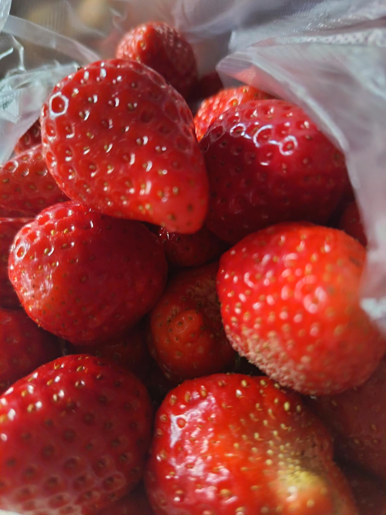 刚拎回的草莓简直是春日里的甜蜜暴击!颗颗饱满鲜红,果皮裹着一层薄薄的果霜,像缀了细碎的水晶,果蒂鲜绿得仿佛还带着枝头的晨露,新鲜得能掐出水来。 捏起一颗咬下去,清甜的汁水瞬间在舌尖爆开,果肉绵密又带着脆嫩的口感,甜中透着一丝微酸,恰到好处地解了腻。没有丝毫酸涩的杂味,每一口都是纯粹的果香,从果肉到果芯都甜得均匀。 一大袋草莓不知不觉就吃了大半,唇齿间还留着清甜的香气,这鲜活的甜润感,大概就是春天最美好的味道了。