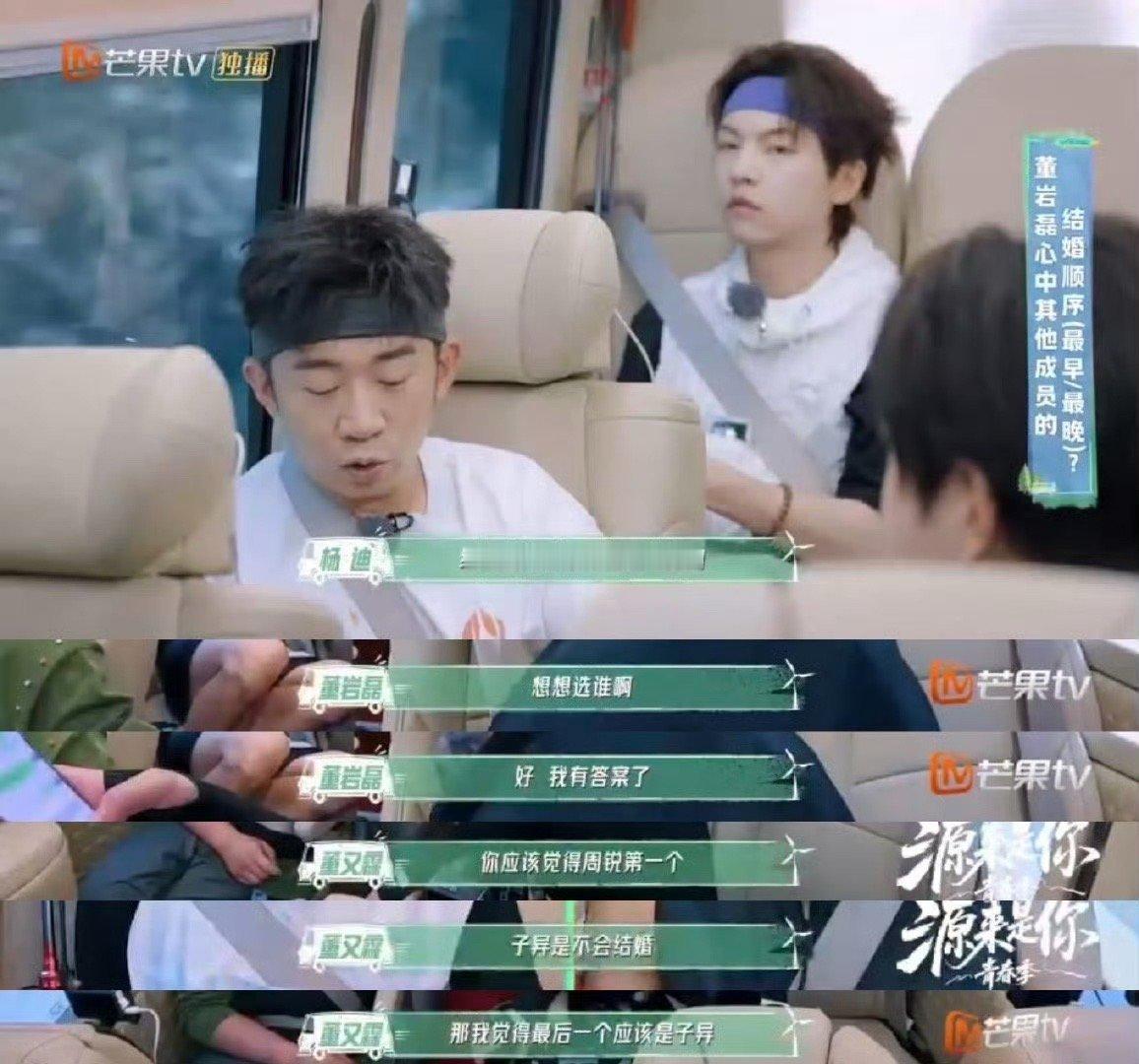 偶练选手上综艺说考虑结婚了源来是你 从舞台到生活,从练习室到综艺录制间,8年时光改变了很多人生的轨迹。看到董岩磊、董又霖、黄新淳和周锐坐在一起聊“结婚”,才发现那些陪伴我们整个夏天的男孩,已经长成了可以担当人生新角色的男人。