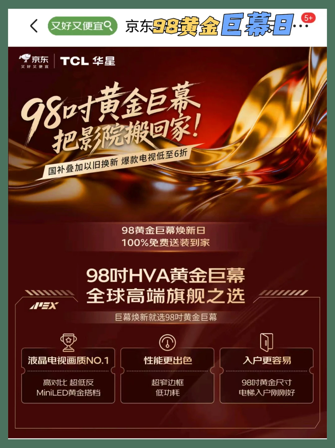 📱 现在入手正是好时机,打开京东搜 “98黄金巨幕日”