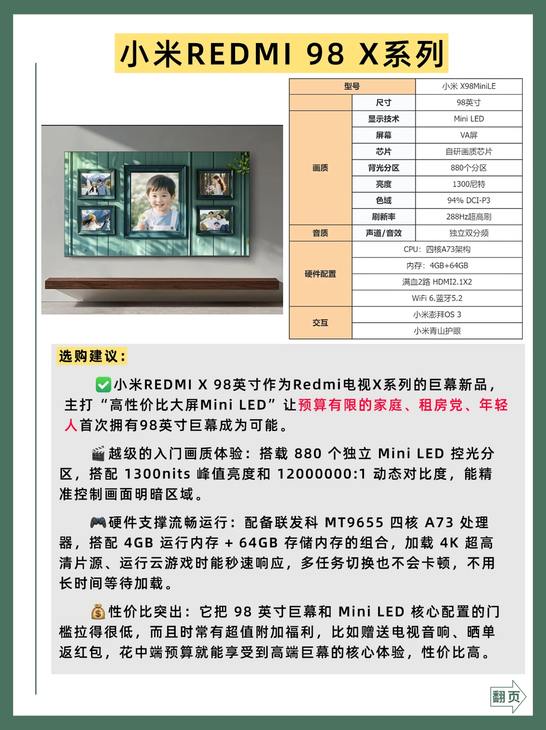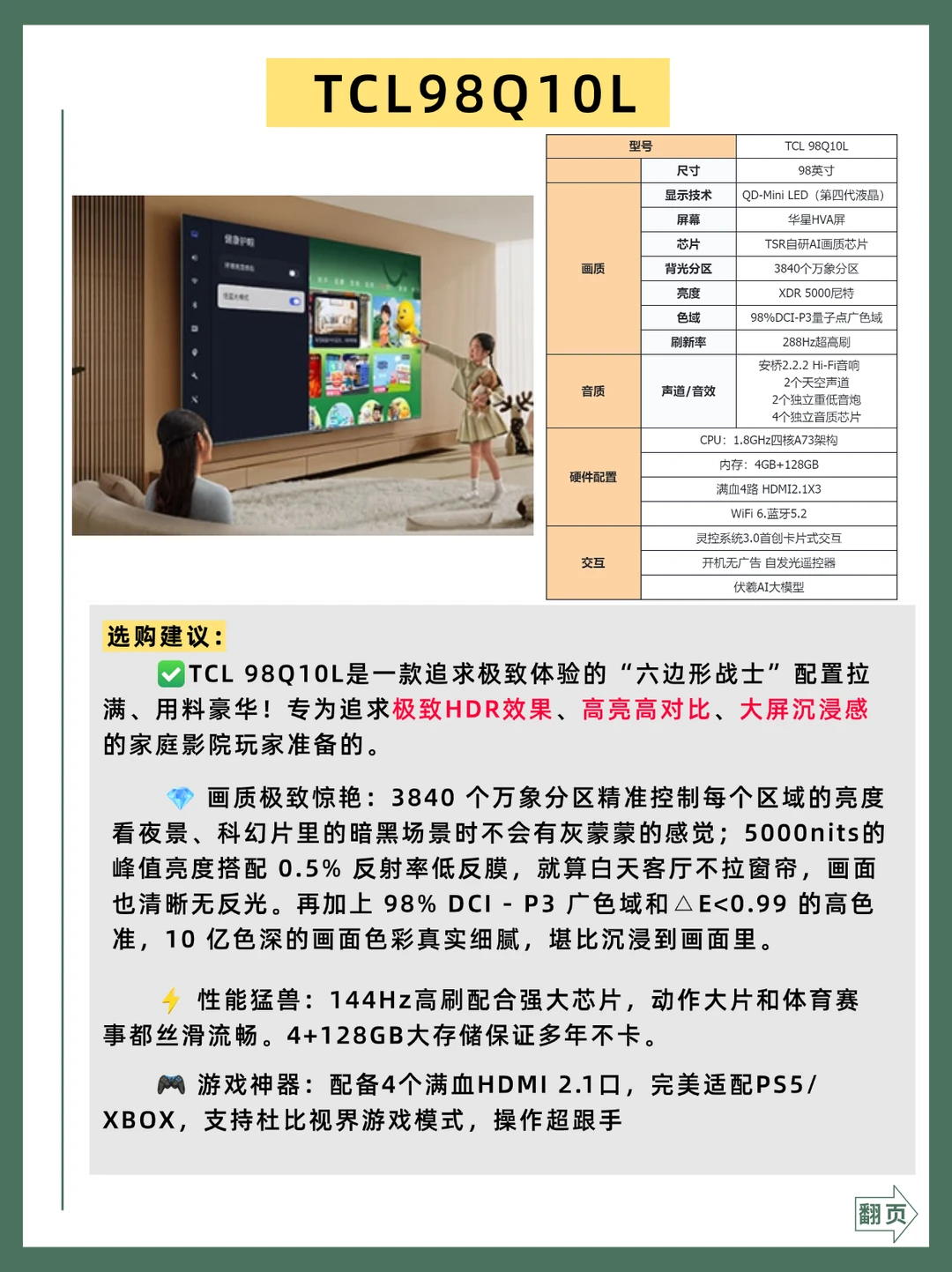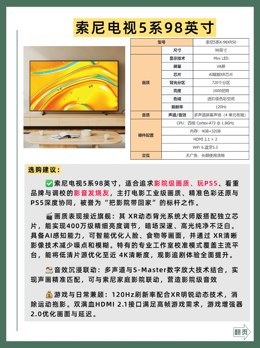 姐妹们,装修挑电视时,面对各种尺寸参数是不是感觉眼花缭乱?既想拥有影院般的包围感,又担心进不了家门?那你可以看看兼顾画质与入户体验的“平衡点”——98英寸。今天就来好好说说,它到底为什么能成为不少人心中的“理想尺寸”。