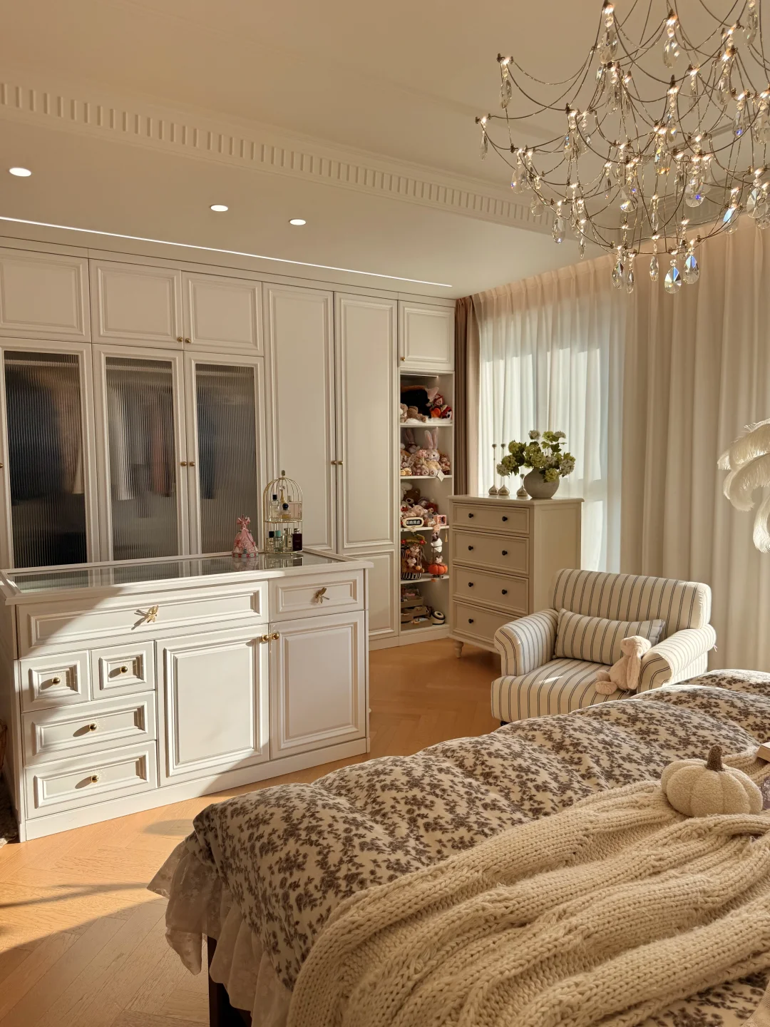 💛现在每次走进这个卧室,都觉得特别治愈。浅色系的装修让人放松,胡桃木家具添了温馨,功能区设计得实用又好看,既能满足休息需求,又能办公、收纳,这样的多功能法式卧室,真的把小家变成了理想中的样子!