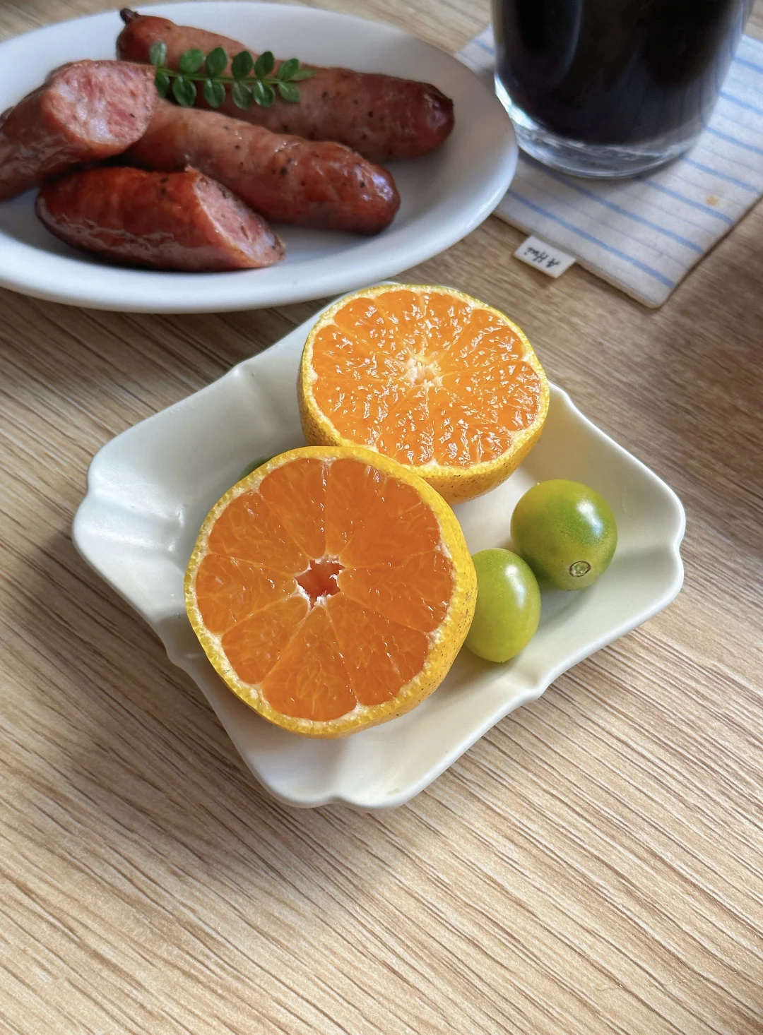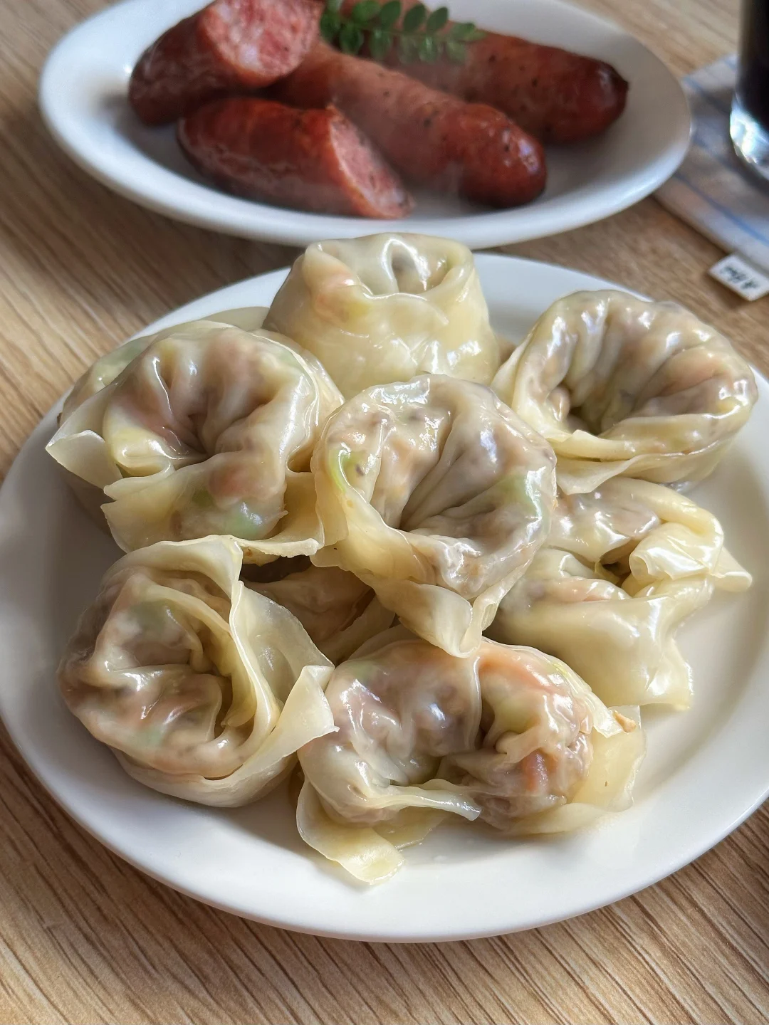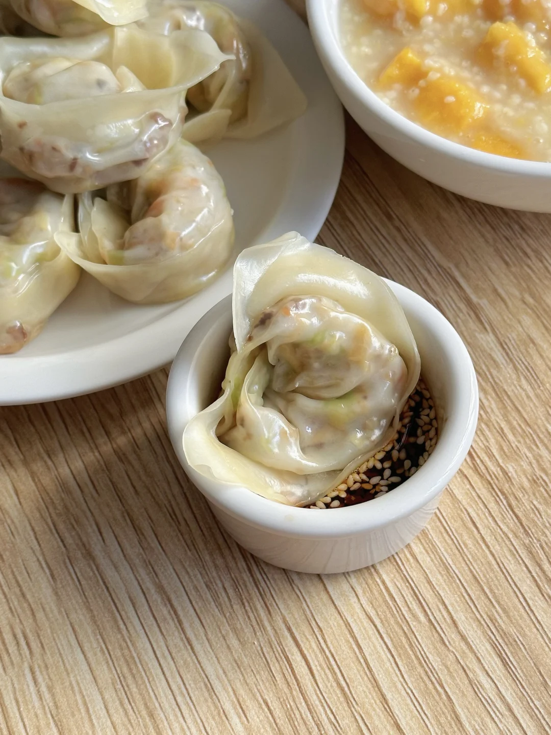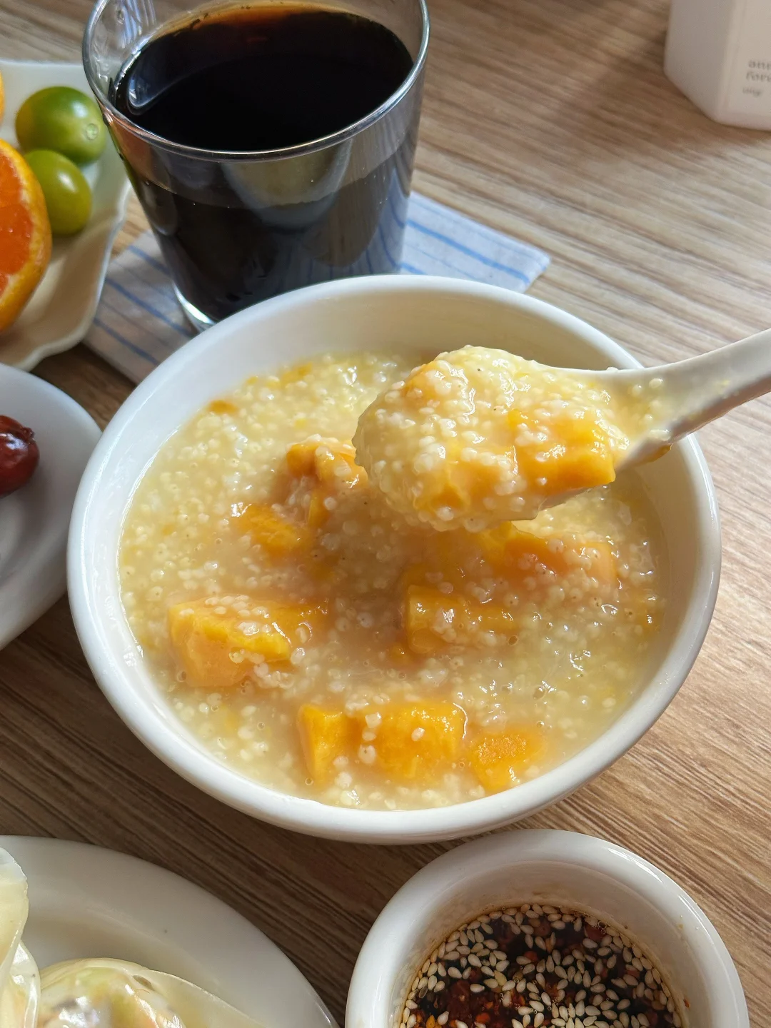 - 🥟手工扁食 内馅是胡萝卜+豆干+包菜+肉末+虾皮的组合💫 今天特意改良了包法,形状更精致啦~一口下去满满都是料,幸福感爆棚! 🫕 红薯小米粥 金黄绵密的红薯配上暖暖的小米粥,早晨喝一碗整个人都舒服了~ 🌭 焦香烤肠 🍊 涌泉蜜橘 ☕️ 咖啡