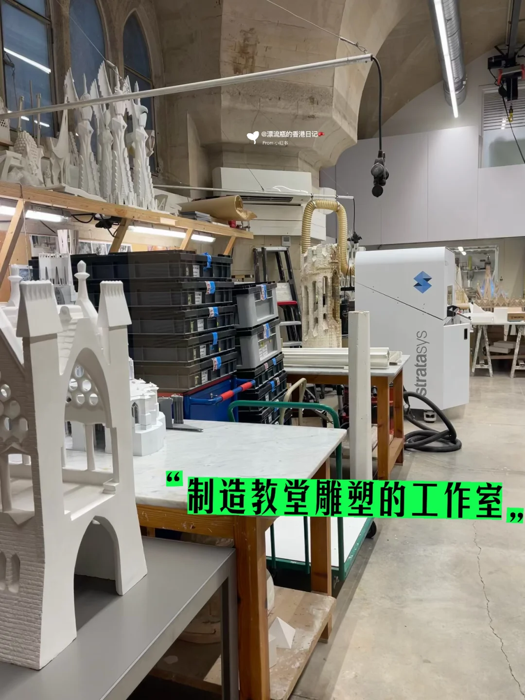 除了教堂内部,一定别忘了参观后面的博物馆,博物馆里里有教堂结构的介绍,背后创作故事和创作工厂等。在一个角落里还能俯瞰高迪大师的墓🪦
