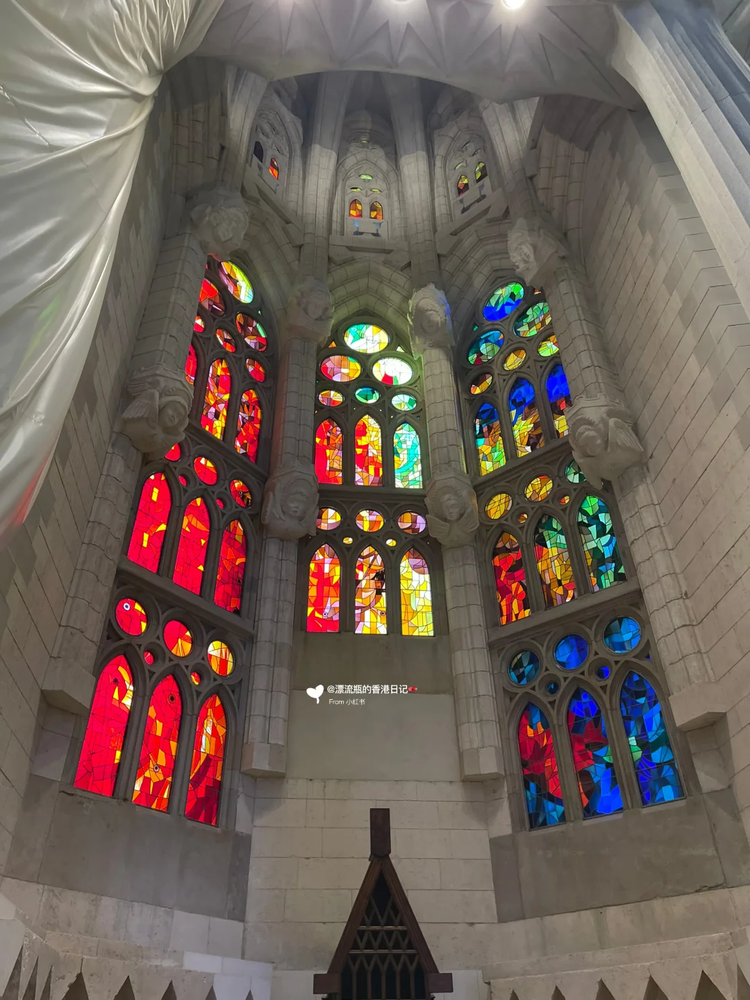 大家不必执着于下午3点或者傍晚去,上午时段同样好看,预约的上午去,教堂里一边透蓝光,一边透橘光🌈