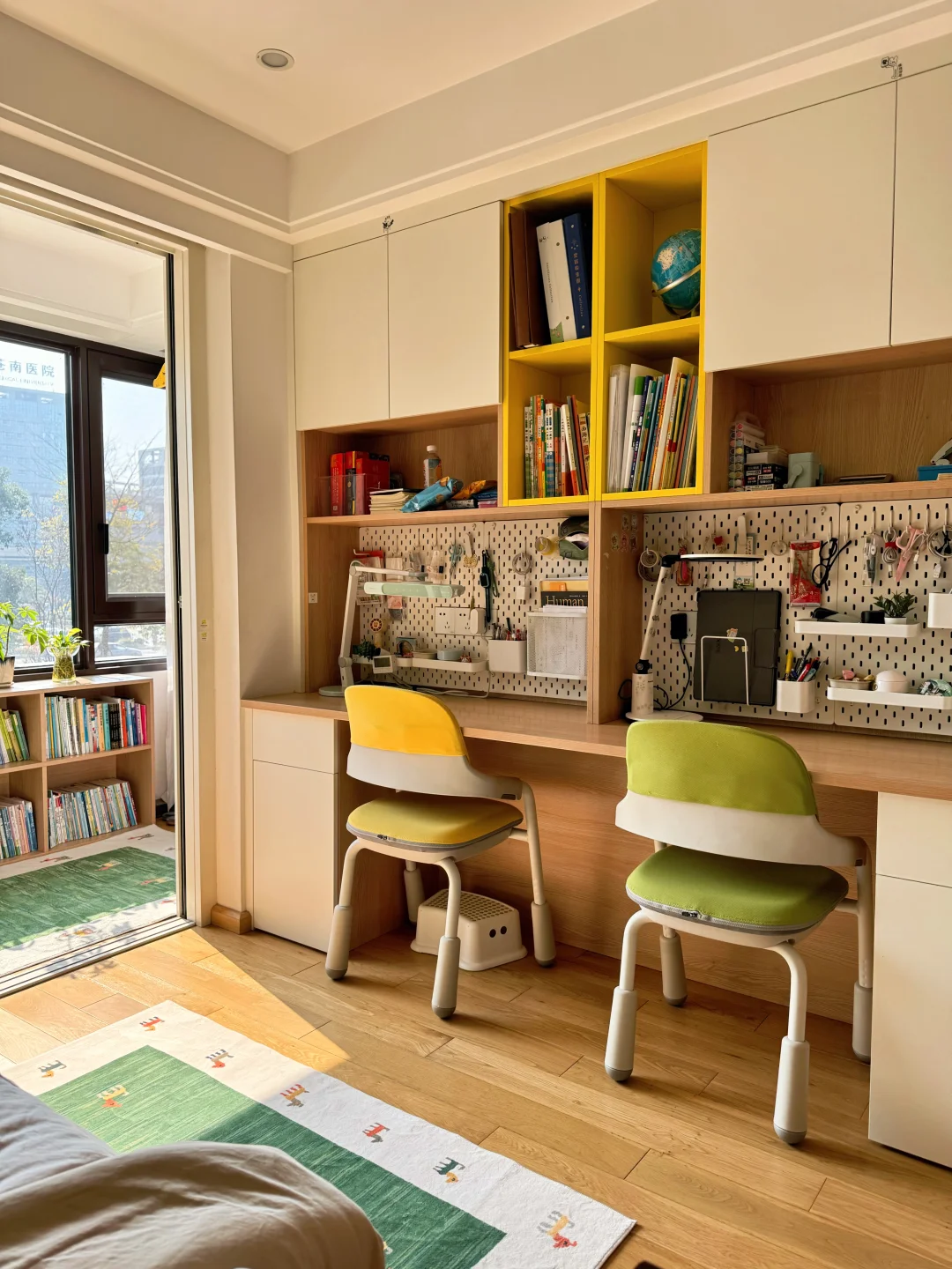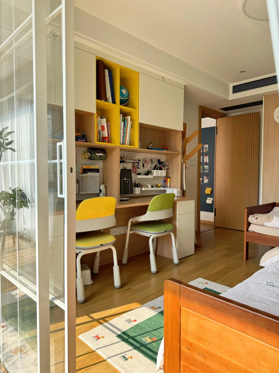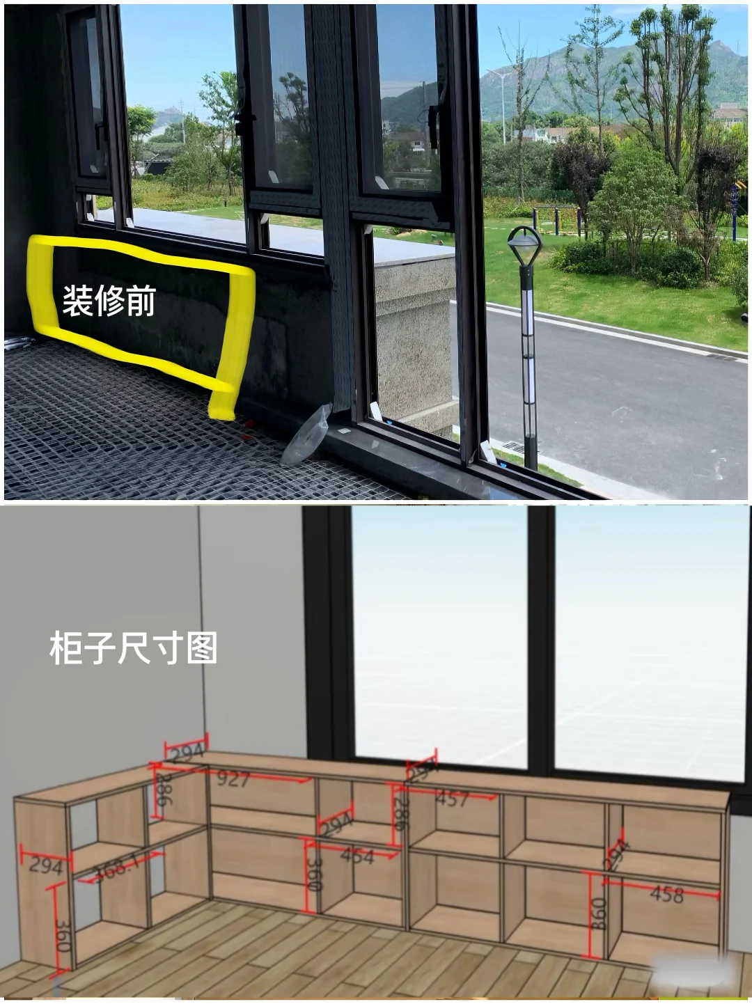 又是晴朗的一天☀️,有阳光的儿童房和阳台真漂亮! 我一定要好好努力,给孩子们更好的生活! 有很多粉丝问柜子尺寸,现在上尺寸图给大家哈 🧡你们~~