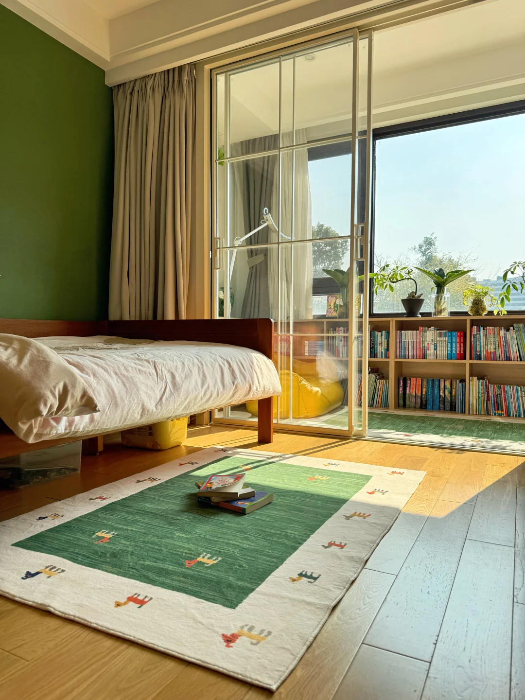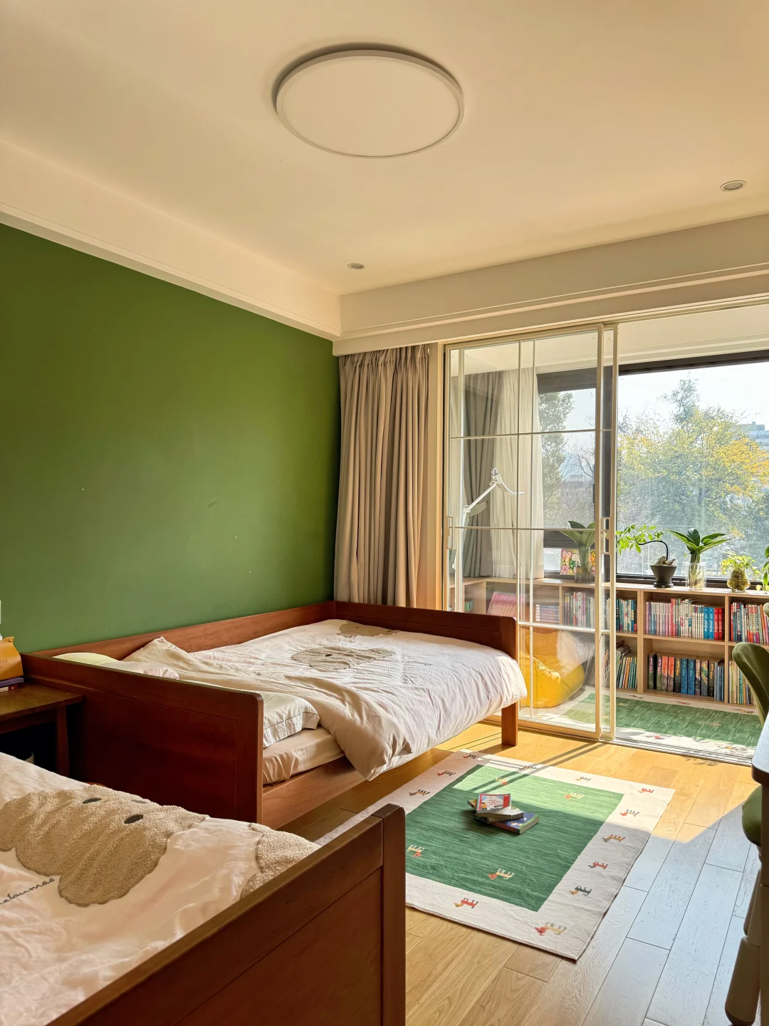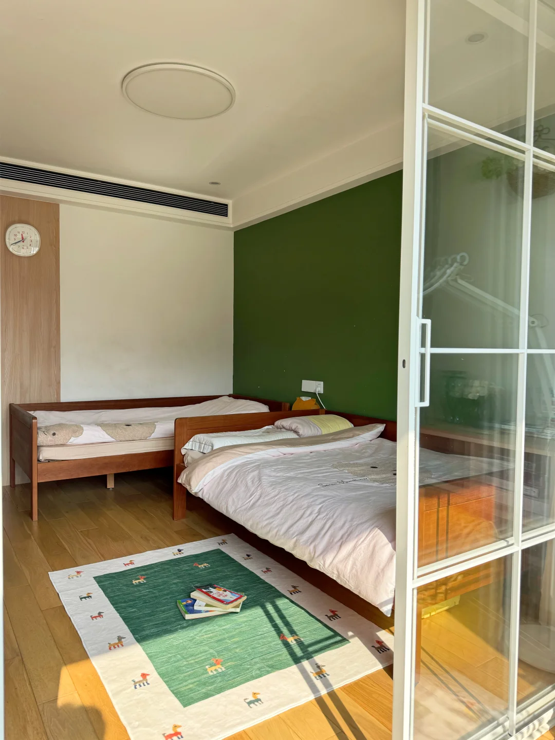 又是晴朗的一天☀️,有阳光的儿童房和阳台真漂亮! 我一定要好好努力,给孩子们更好的生活! 有很多粉丝问柜子尺寸,现在上尺寸图给大家哈 🧡你们~~