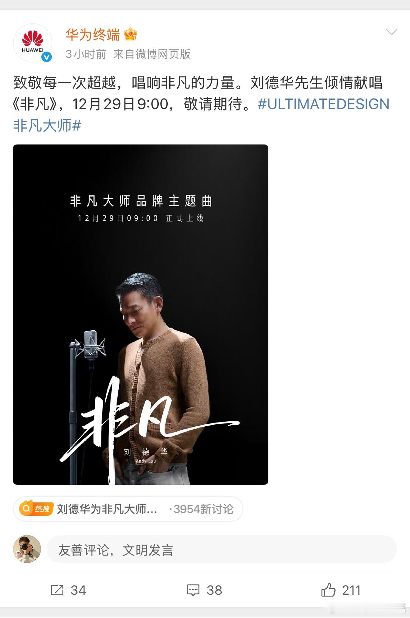 刘德华为非凡大师献唱还得是华仔,和非凡大师就是莫名的契合,已经迫不及待想听了