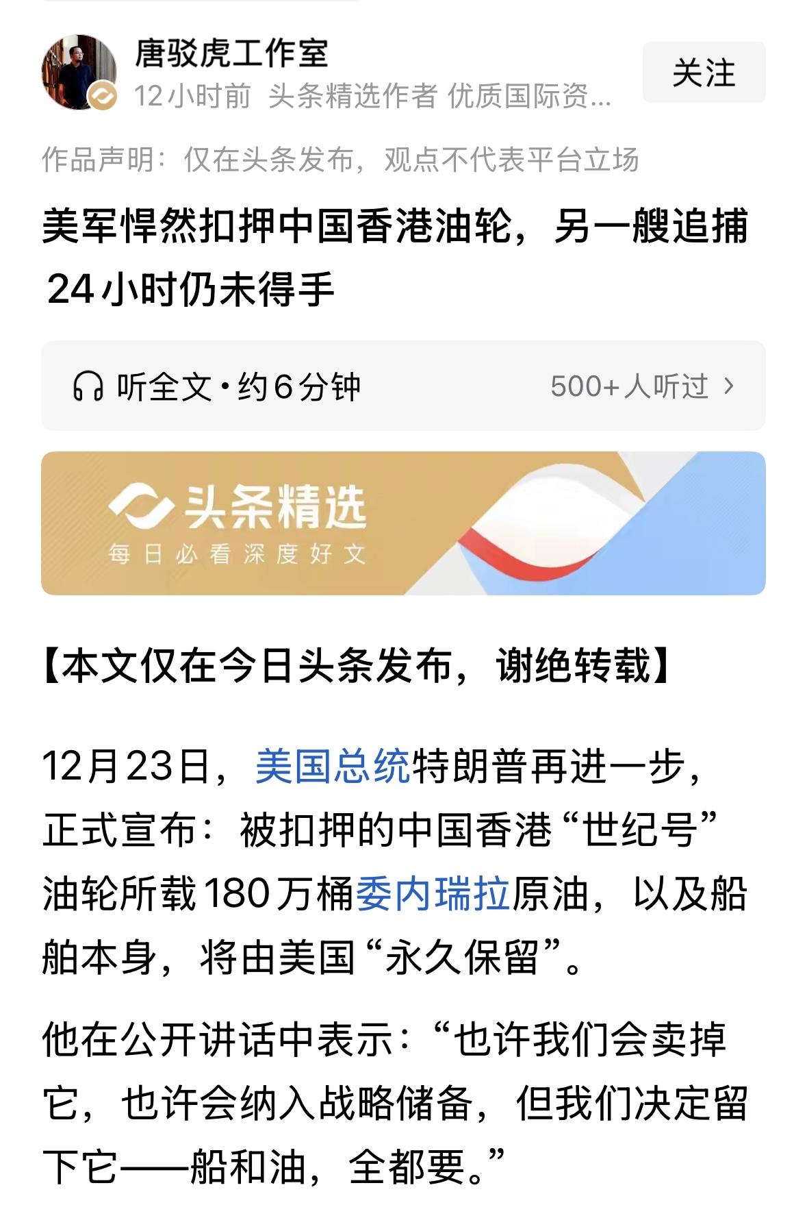 什么情况?委内瑞拉局势升级,起码不能伤害中国利益,胆敢对中国船只动粗,决不答应!具体这个船只事什么情况?我们继续观察!