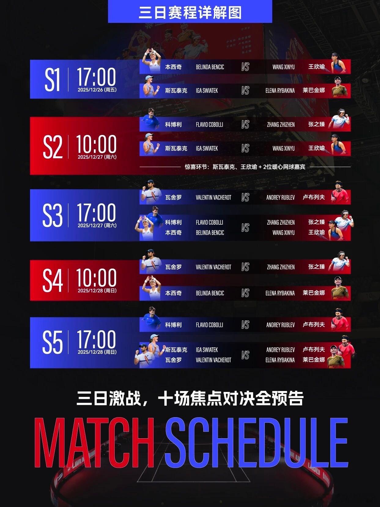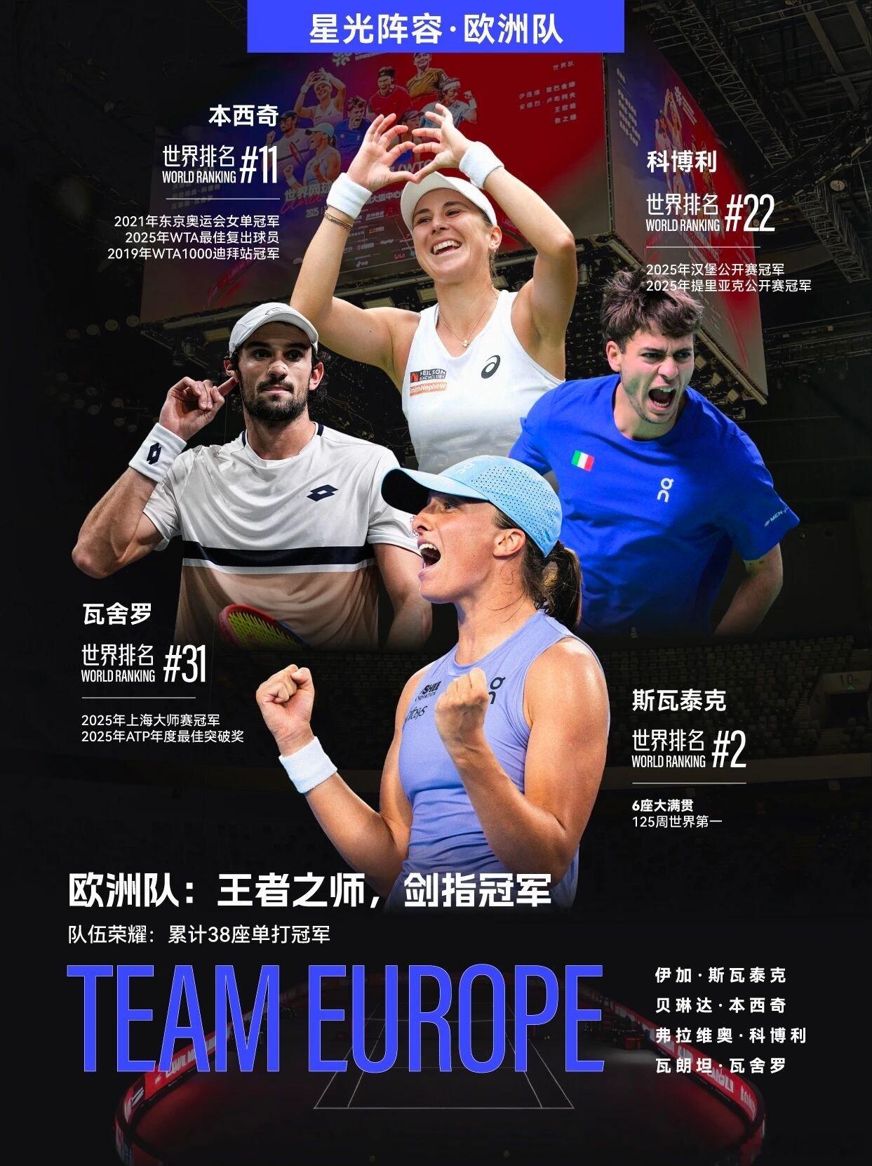 WTCC世界网球洲际对抗赛 本周WTCC深圳站将开赛,刚刚官方发布了阵容以及赛程。✅欧洲队:大满贯冠军斯瓦泰克领衔,科博利、瓦舍罗以及奥运单打冠军本西奇齐聚鹏城。✅世界队:新科总决赛冠军莱巴金娜ElenaRybakina 带队,张之臻、卢布列夫出战,大满贯双打冠军王欣瑜相约粤B