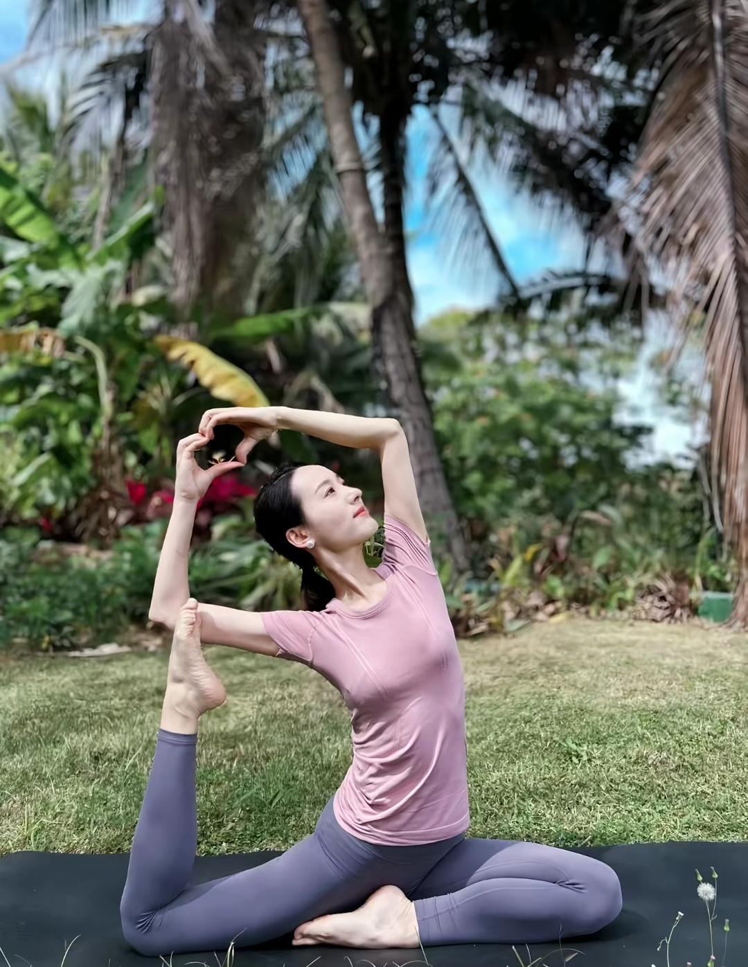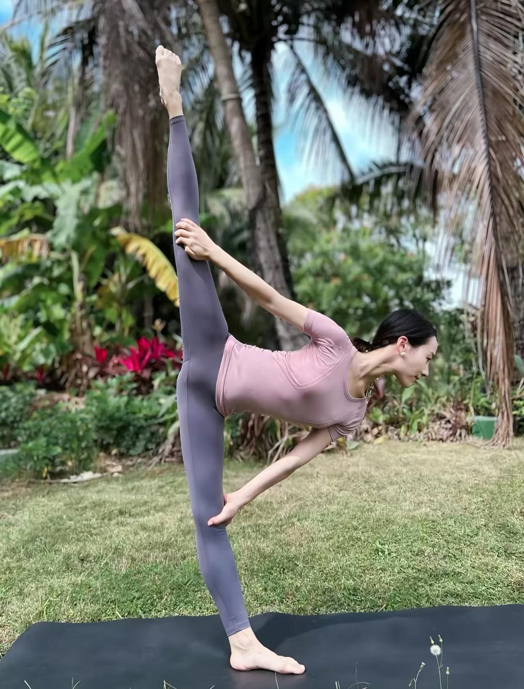 这位美女在户外做瑜伽,姿势优雅。