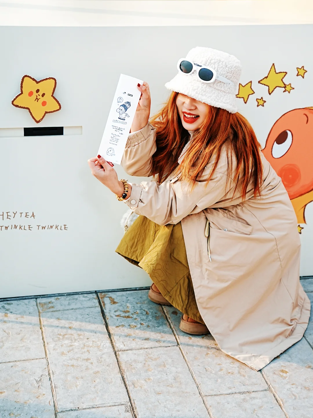 1️⃣道具拿手里:喜茶×星星人奶茶🧋和手提袋就是拍照道具!用它互动,生活感upup