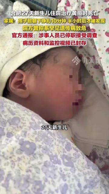 谁能想到?几乎每个宝宝都要过的黄疸关,居然要了27天宝宝的命? 合肥那孩子才27天,刚会用小拳头蹭妈妈胸口,刚能盯着床头小老虎看10秒,就因为退黄疸住进医院,再也没出来。 咱们当爸妈的都懂啊,宝宝出生3天开始黄脸,要么晒太阳,要么照蓝光,怎么到这家医院就成了催命符? 现在涉事的人停职了,病历监控也封了,可咱最想知道,常见的黄疸治疗,到底哪错了?是药不对?还是没人盯着宝宝? 有人说肯定是医院疏忽了,这么小的娃得时刻守着;也有人说黄疸也有危险,可再危险也不该治没了啊! 我这当妈的看了直心疼,那可是刚要认识世界的小不点儿啊。 你们家宝宝黄疸时,有没有过后怕的细节?这种常见病变悲剧,最该查清楚啥?